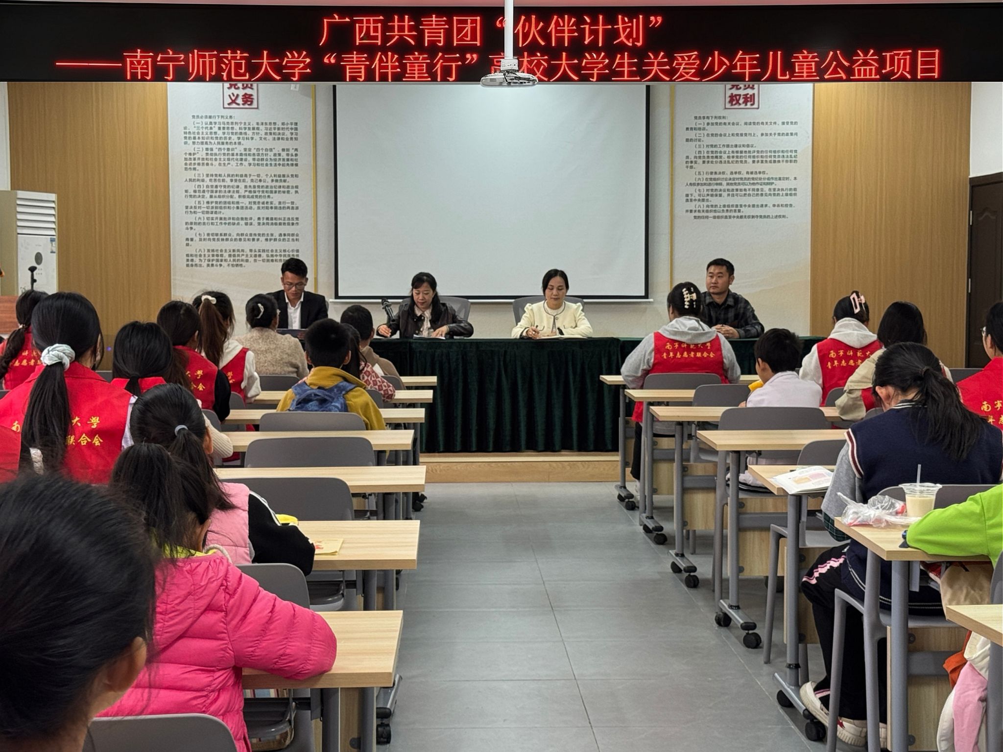 3月14日,beat365官网“青伴童行”高校大学生关爱少年儿童爱心托管项目启动仪式在西乡塘区明秀南社区顺利举行。西乡塘区团委、北湖街道团委、beat365官网团委负责人及项目志愿者、社区少年儿童共同参与活动。