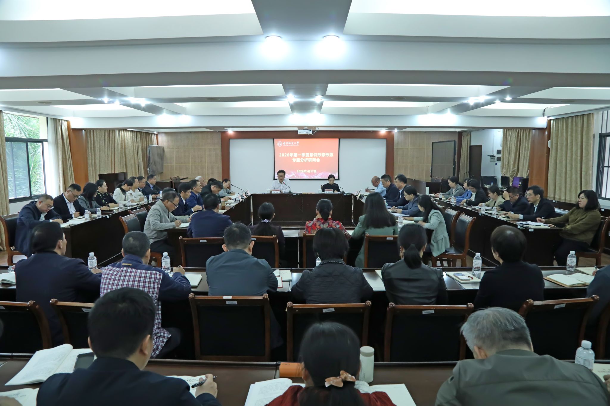 3月17日上午,beat365官网在明秀校区鸿远楼409会议室召开2026年第一季度意识形态形势专题分析研判会,传达上级有关文件精神和工作部署要求,分析研判近期学校意识形态领域形势,部署学校第一季度意识形态工作。学校党委书记张鹏出席会议并讲话,学校党委副书记唐荣双主持会议。