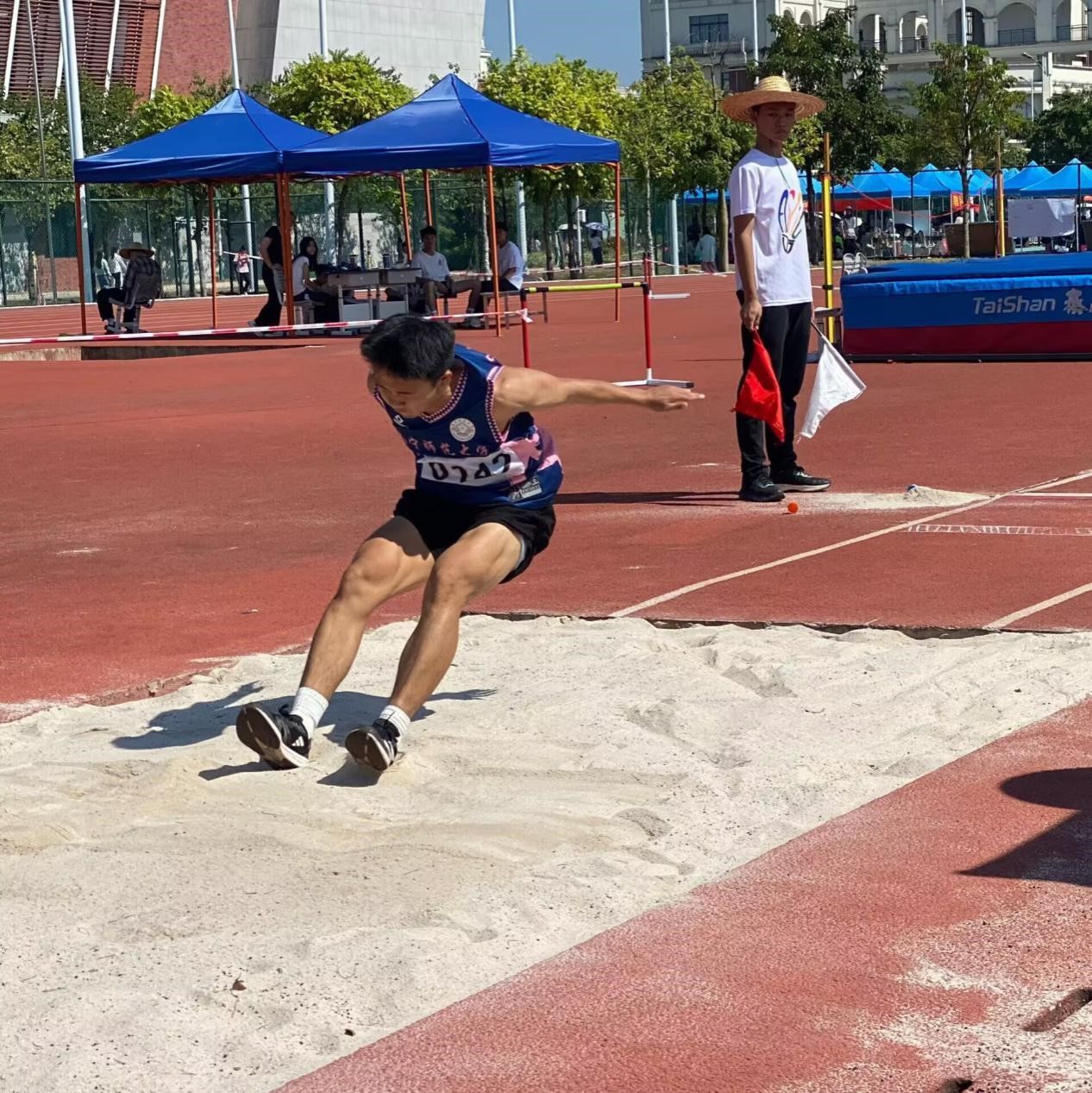 随着裁判员的一声令下,比赛正式拉开序幕。他们眼神坚定,步伐稳健,在助跑道上加速冲刺,如同一匹蓄势待发的骏马,最终在沙坑前腾空而起,划出一道优美的弧线,稳稳落地,留下了本次比赛的佳绩。每一次跳跃,都是对自我极限的挑战,也是对梦想的执着追求。