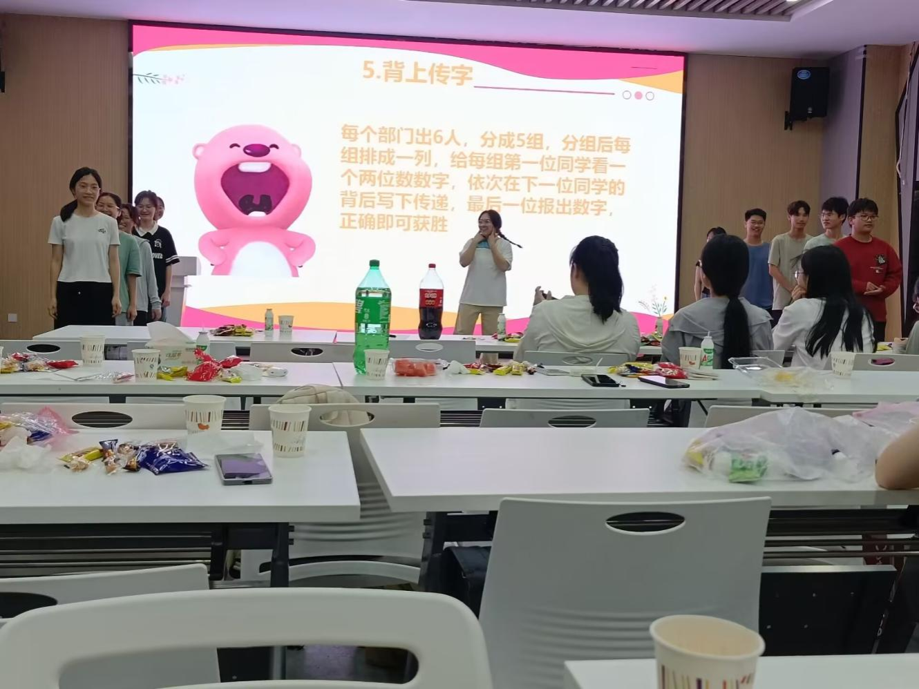活动伊始,主持人介绍本次活动的主要内容和流程。主持人介绍了协会骨干成员,让新成员对协会的组织架构有清晰的认识。随后,协会主要负责人发言,深入介绍协会指导思想和发展规划,简要阐述各部门开展活动的安排部署,加深成员对协会近期活动安排的了解。各部门成员通过PPT展示依次进行自我介绍,分享个人特长、兴趣爱好,增进了彼此了解。在游戏互动环节中,现场氛围活跃,有效提升了成员协作默契度。最后,由主要负责人总结发言,全体成员合影留念。此次见面会,成员们积极参与,活动现场秩序井然,氛围活跃。
