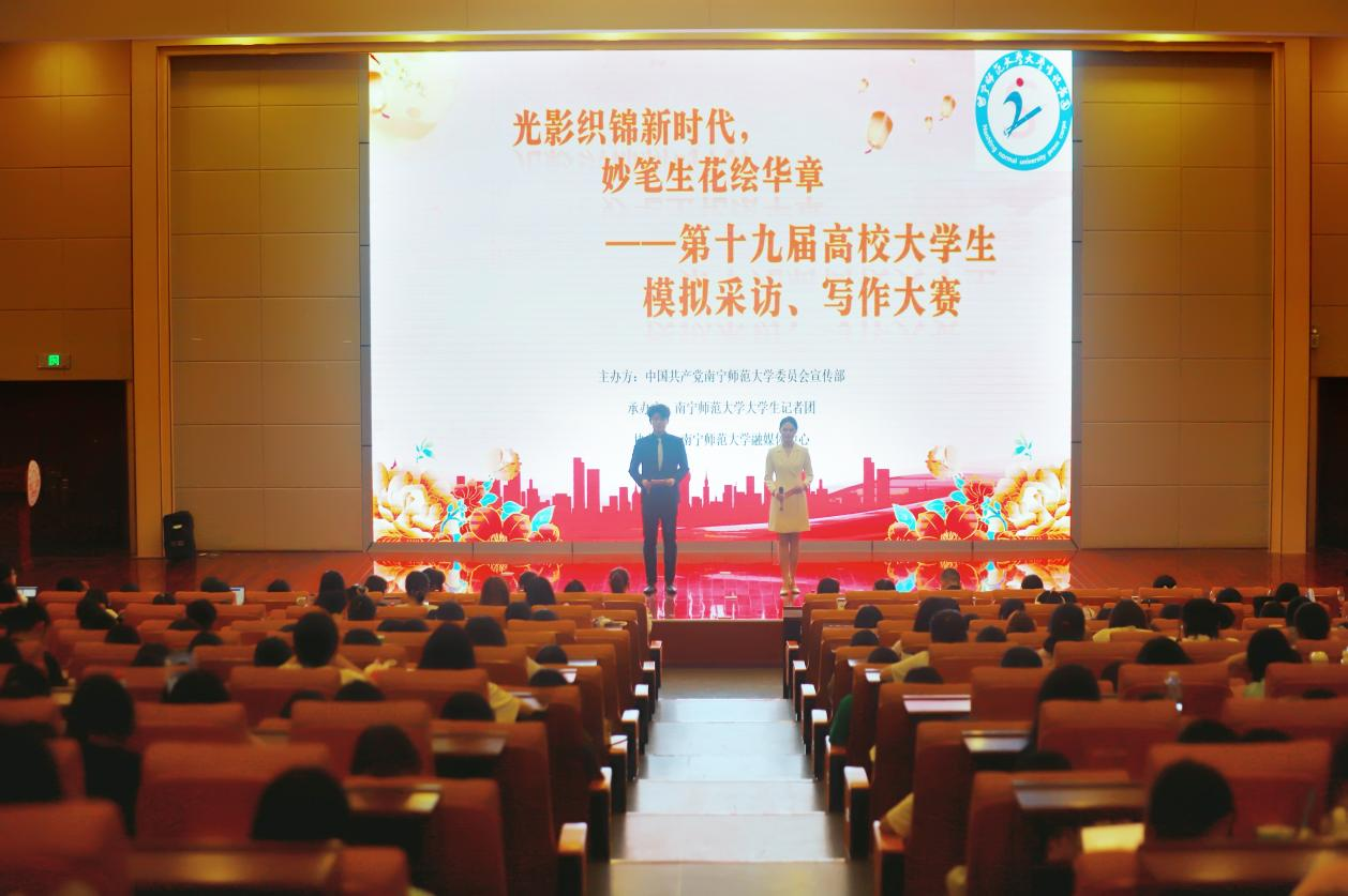 5月10日下午,由beat365官网党委宣传部主办、大学生记者团承办的第十九届高校大学生模拟采访、写作大赛在beat365官网五合校区文综114报告厅顺利举办。beat365官网宣传部秦崭崭老师、王毅老师及新闻与传播学院研究生蔡绿嫣担任评委。校内外高校代表、社团代表等700余人观看了决赛。