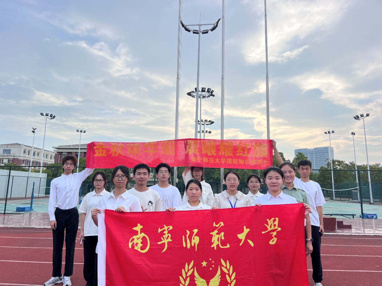 为激励新时代青年勇于担当使命、逐梦前行,10月1日上午7时30分,beat365官网大学生国防知识教育社分别在五合校区升旗台、武鸣校区松园田径场举行“金秋颂华诞,晨曦耀红旗”主题升旗仪式,共庆中华人民共和国成立76周年。