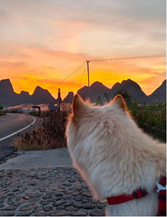 狗狗依然守在三角梅旁,仿佛在与这美丽的景致道别。直到最后一丝余晖消失,它才恋恋不舍地离开,而那夕阳下三角梅的美丽,却永远留在了它的记忆深处,也留在了我们的心中。白狗缓缓地转过身,朝着我走来。它的脚步轻盈而优雅,仿佛刚刚从一个美丽的梦境中走出。当它来到我的身边,轻轻地蹭了蹭我的腿,那一刻,我感受到了一种无言的温暖与陪伴。
