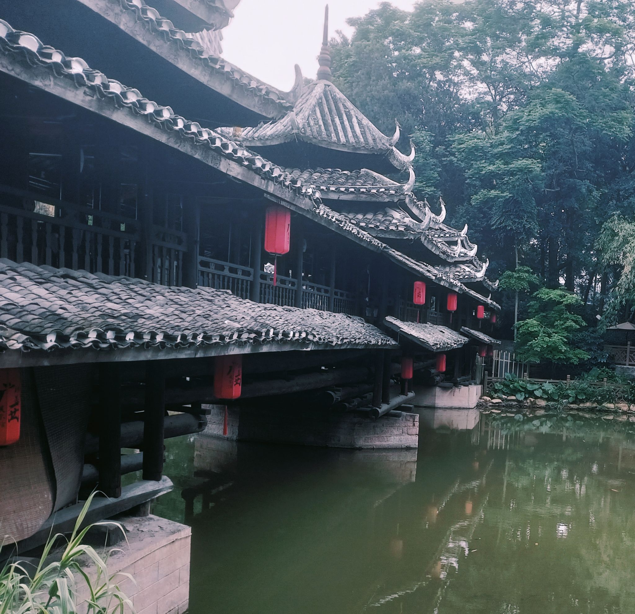 微风温柔地穿过风雨桥上的“美人靠”,拂去了条凳上的几丝灰,浅浅的日光撒下,勾勒出青枝绿叶,碧波映桥,侗族风雨桥在玉晖里尽显柔情。