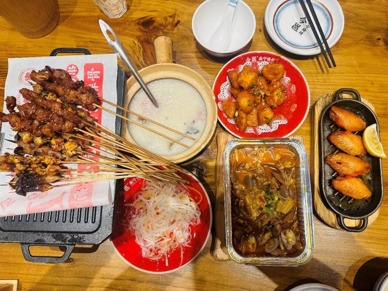 在这一帧温馨而热闹的生活画面中,一桌丰盛的烧烤正散发着诱人的香气,仿佛在诉说着一个关于美食与欢聚的故事。烤肉串在炭火的炙烤下变得金黄酥脆,红色的辣椒点缀其上,为这道美食增添了几分火辣与热情。在这里,每个人都可以放下心中的烦恼与疲惫,尽情享受美食带来的快乐与满足。探索生活中的乐趣,就像品尝这一桌丰盛的烧烤,只要用心去感受,便能在这一处人间烟火气中体验到生活的韵味与情感的温度。