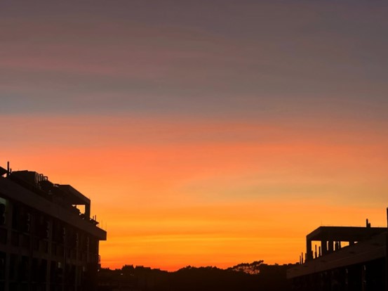 夕阳如一位老画家,以橙红为墨,轻轻挥洒于城市的边缘,探索着生活中最温柔的瞬间。云朵被染上了柔和的轮廓,仿佛是天空与大地间最细腻的对话,模糊的建筑物与树木交织成一幅朦胧的画卷,它们在夕阳的映照下显得格外神秘。