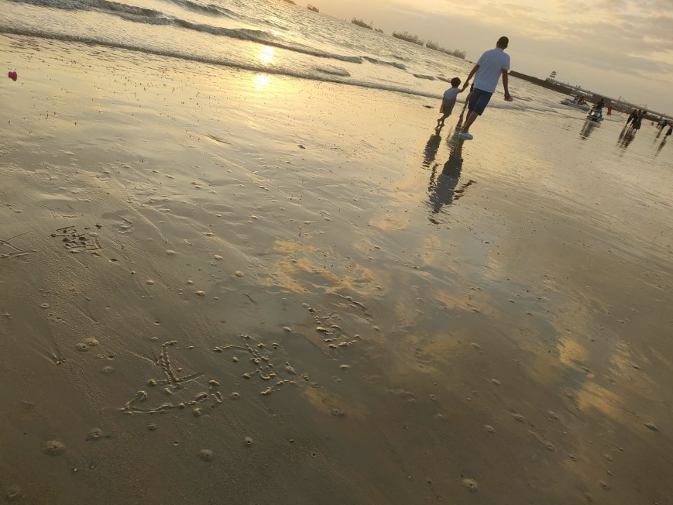 夕阳跌落成海天的鎏金裂缝,人们踏浪而行,仿佛走向温暖的港湾,柔软而辽阔。细软的沙粒如银,潮汐轻吻脚踝。夕阳西下,天与海被染成一场温柔的梦。