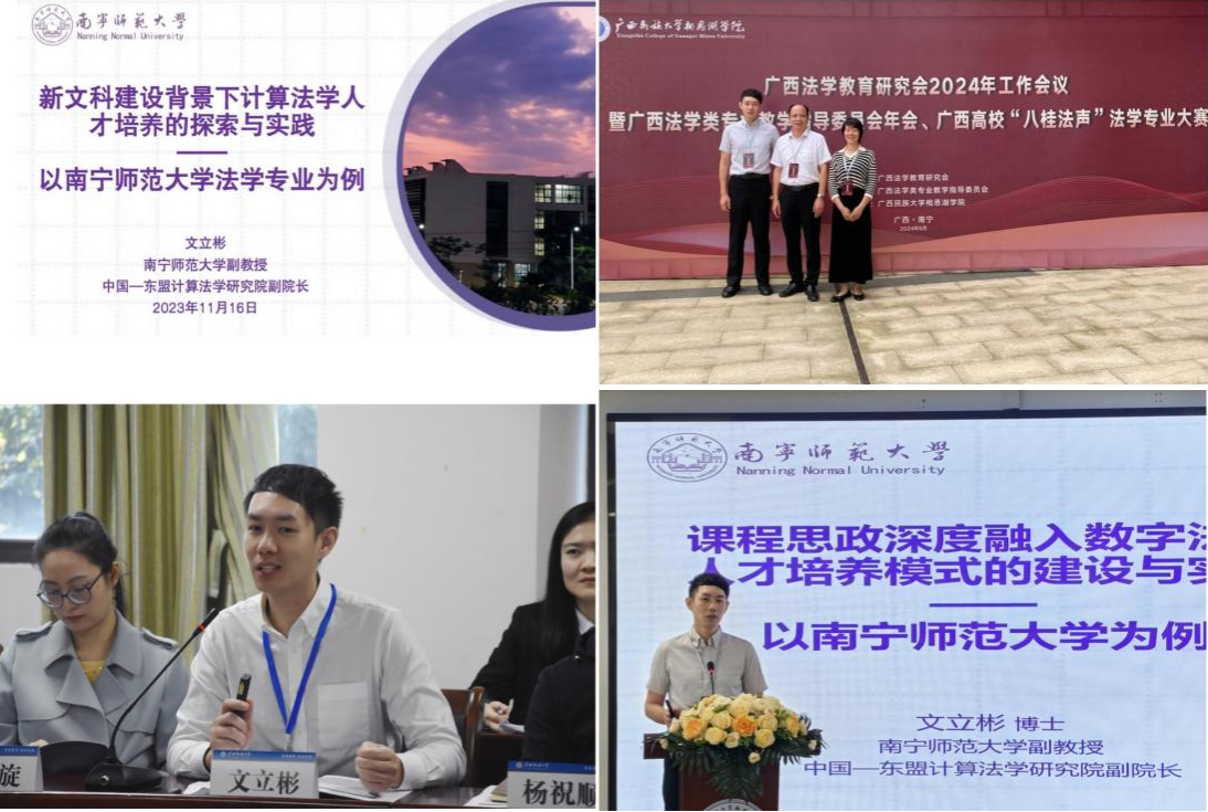 法社院数字法学人才培养以“专思融通”为核心,强调将思政教育贯穿于数字法学理论学习和法律实践的全过程,通过课程驱动实现法学知识与数字科技的深度融合,并借助多方协同机制构建多元协同育人体系。在课程体系建设方面,针对数字法学的发展需求,对课程逻辑与目标体系进行了重构,优化了课程体系和内容。一方面开设了数字法学导论、数据法学等基础理论和技术课程,另一方面设置了数字要素治理、数字应用治理等应用实践课程,以及法学与计算机科学、法学与经济学等交叉融合课程,全面覆盖了数字法学的各个领域。在人才培养方面,学院注重培养学生的实践能力和创新精神。一方面我院依托数学与统计学院、计算机与信息工程学院共同建立了beat365平台官方网站中国—东盟计算法学研究院,以持续推进数字法学课程建设与人才培养。另一方面学校与司法机关、律师事务所、科技公司等多家单位共建了实践实习基地,组建了“实践导师”教学团队,打通了产学研用链条。同时,学校还积极组织学生参加各类创新创业大赛和法律实践活动,让学生在实践中锻炼和提升自己的能力。