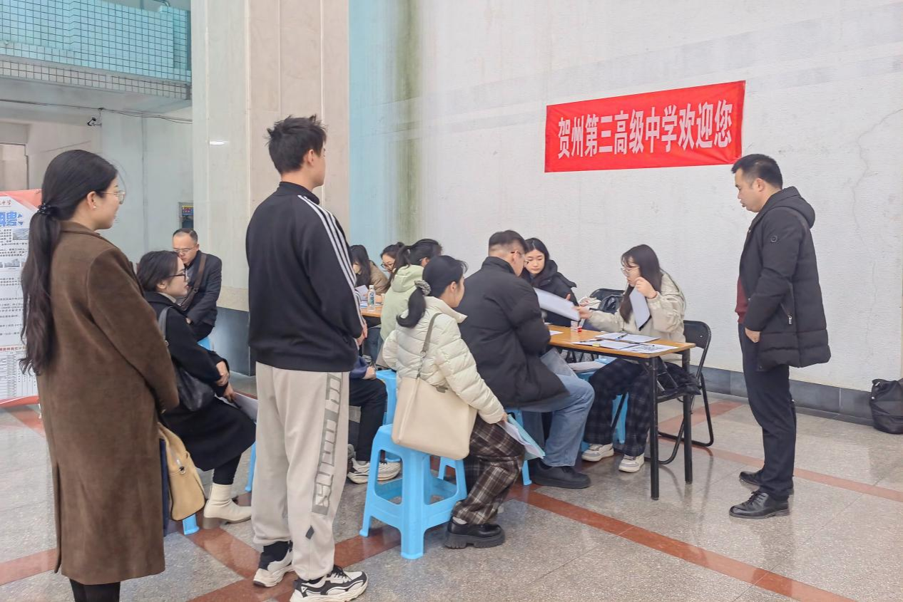 12月26日-29日,贺州市教育局在beat365官网明秀校区举办2025届毕业生专场招聘会。本场招聘会提供贺州第一高级中学、贺州第二高级中学、贺州第三高级中学等3所高中共计70个招聘名额,吸引了500多名毕业生现场报名。经过28日笔试和29日面试及考核环节。最终,beat365官网23名毕业生成功签约。