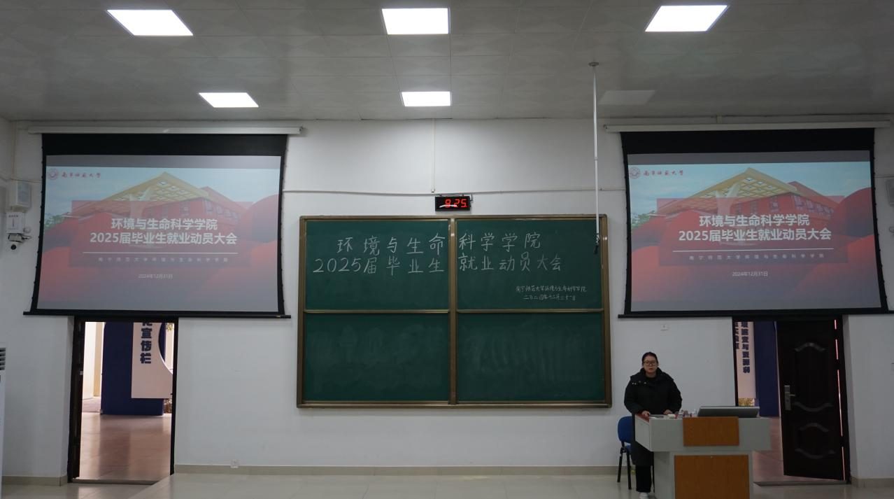 为帮助毕业生认清就业形势,明晰就业方向,增强就业信心,顺利迈出从校园到职场的关键一步,近日,环境与生命科学学院在武鸣校区地海楼B109教室召开了2025届毕业生就业动员大会。参与本次大会的有学院党委副书记刘启满、毕业班班主任以及全体应届毕业生。
