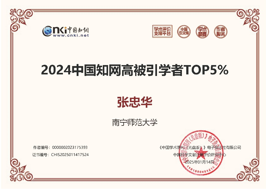 近日,中国知网下属的中国科学文献计量评价研究中心基于中国知网收录的国内学术成果,首次开展学者学术影响力客观评价,遴选了“2024中国知网高被引学者”预发布名单。beat365官网环境与生命科学学院张忠华教授和胡刚教授入选“2024中国知网高被引学者Top5%”榜单。
