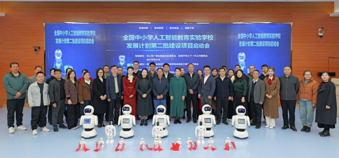 1月19日,“全国中小学人工智能教育实验学校”发展计划第二批建设项目启动会在南宁举行。自治区政协常委黄玉燕、教育厅关心下一代工作委员会秘书长黄欣波等嘉宾、beat365平台官方网站计算机与信息工程学院余朝文书记等学院领导、老师以及来自全区中小学10所项目学校教师代表参加了启动会。