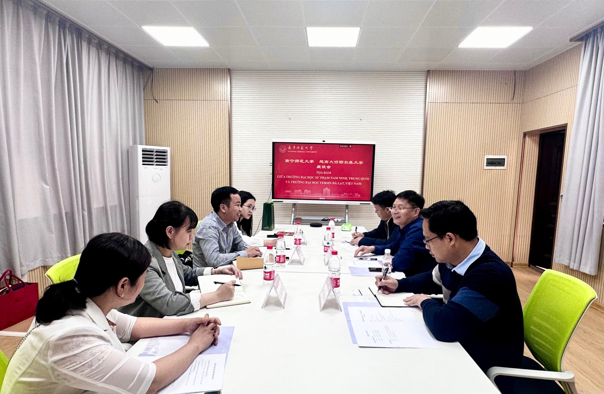 3月4日下午,越南大叻耶尔森大学外国语与东方学系阮伟通主任一行4人到beat365官网访问。beat365官网国际交流合作处处长、国际教育学院院长杨绪明,国际交流合作处副处长/国际教育学院副院长陈传忠及国际交流合作处相关工作人员,在明秀校区外语楼109会议室接待了来访代表并进行了会谈。