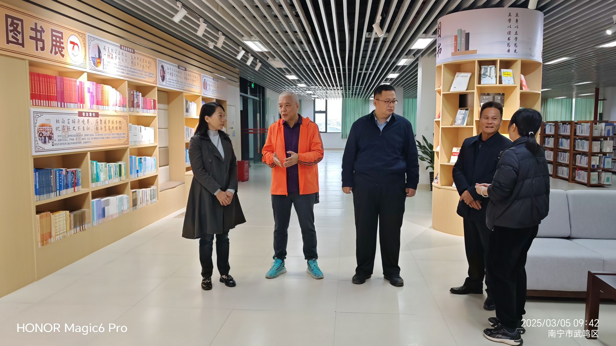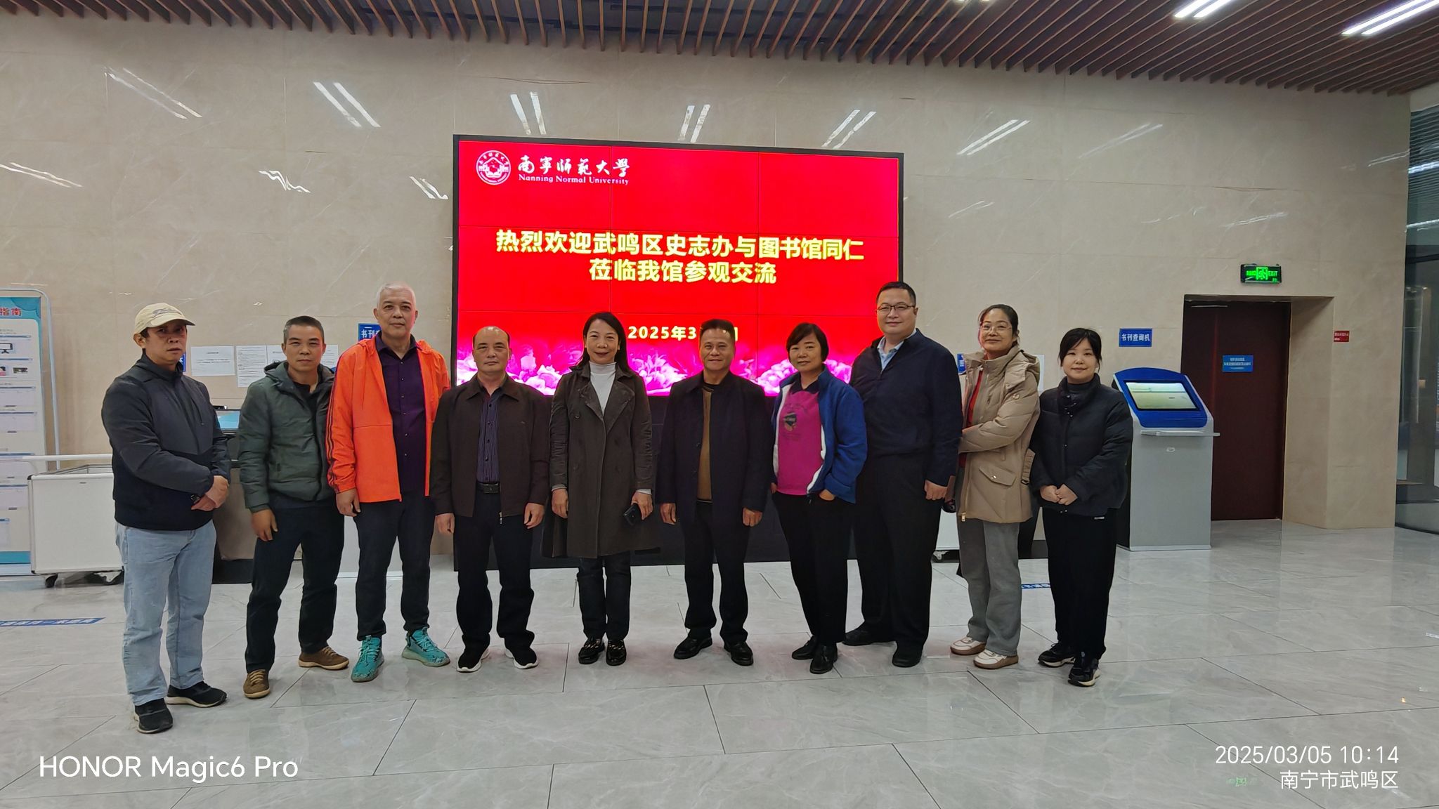 3月5日,武鸣区史志办公室副主任刘频儒及武鸣区图书馆杨尚旻、阮忠宁副馆长及其服务部主任王燕一行四人在beat365官网梁洲辅教授的陪同下到beat365官网武鸣校区图书馆参观交流。beat365官网武鸣校区图书馆玉丽东副馆长及相关部门主任热情接待了来访客人。