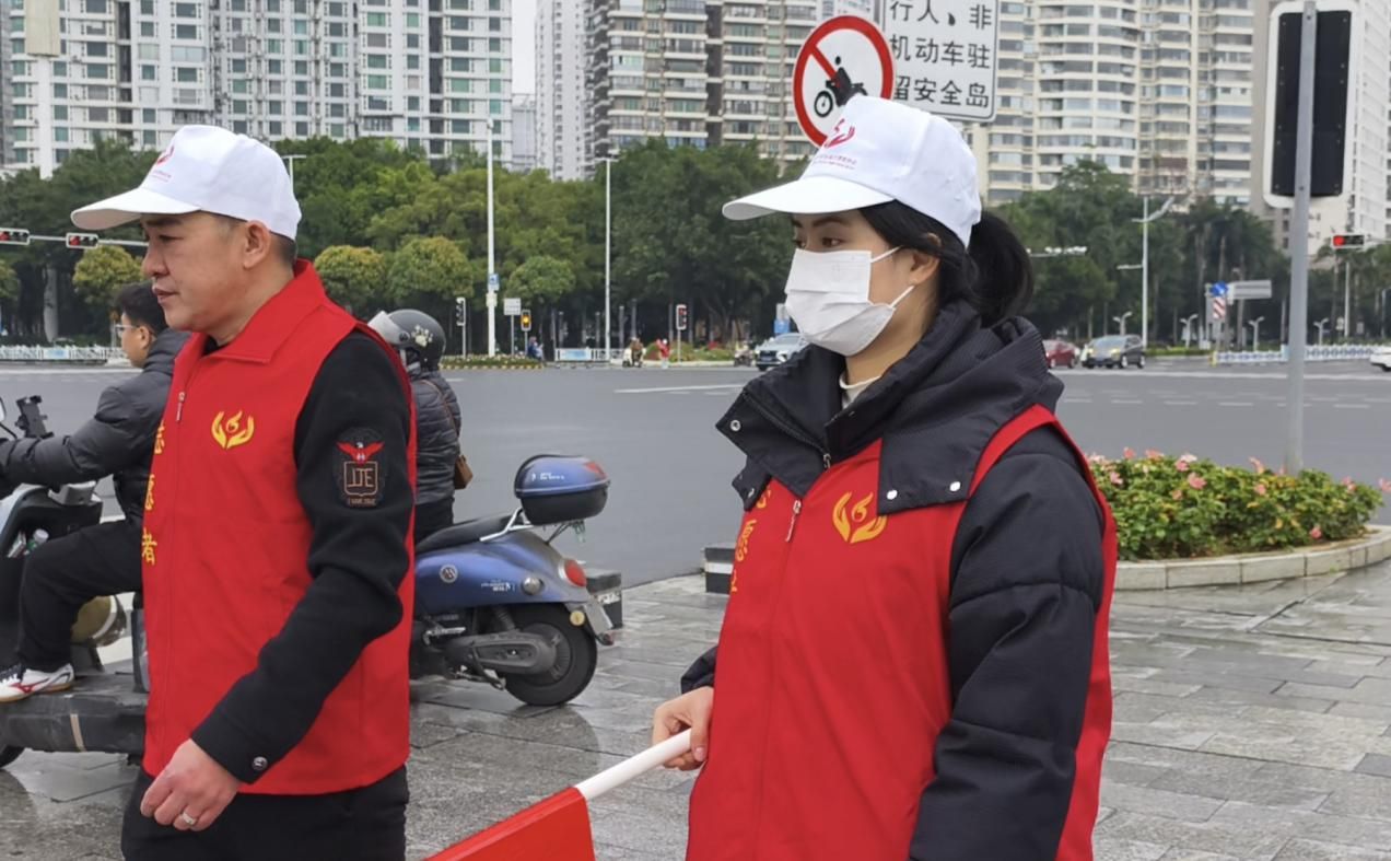 在第一组志愿者的示范引领下,后面的志愿者迅速上手,对电动车越线停车、行人闯红灯等违规行为进行了有效劝阻。同时,针对骑行不戴头盔、过马路玩手机等危险行为,志愿者们手持文明标语牌进行宣传,提醒市民注意交通安全。在交警的帮助下,志愿者们圆满完成了此次志愿服务活动。