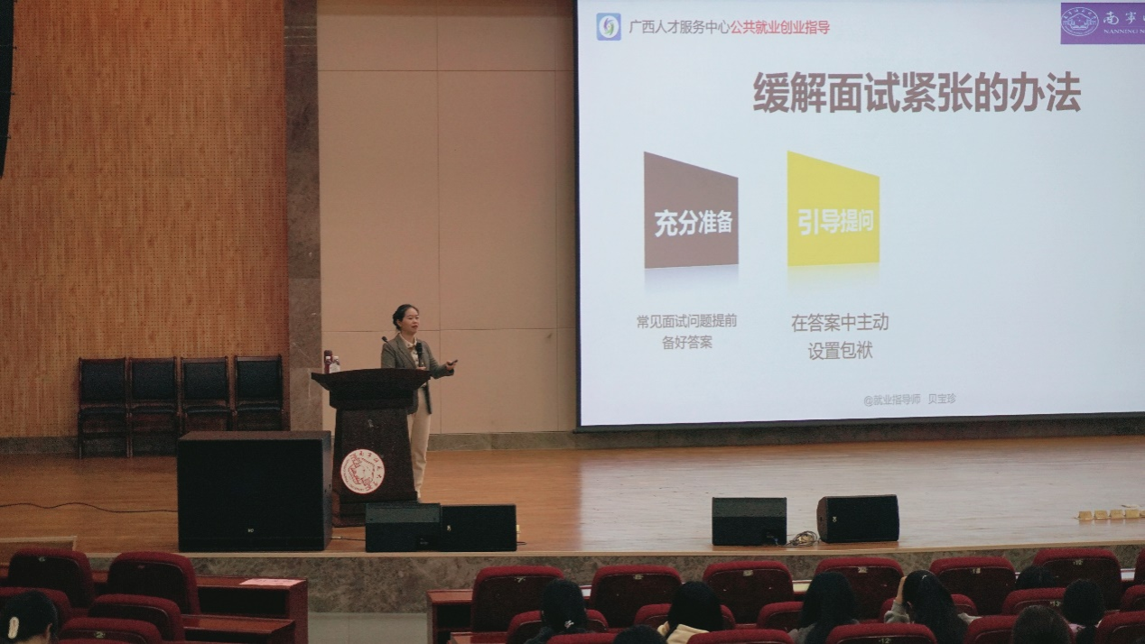 随后,学院开展求职专项辅导活动。环境科学专业曲炳鹏老师围绕简历撰写这一关键环节,从内容定制、排版优化、成果量化等多维度展开细致讲解,为毕业生传授简历制作的核心要点。特邀嘉宾贝宝珍则聚焦面试场景,围绕面试逻辑表达、礼仪形象管理等核心环节举例进行实际的技巧分享,助力毕业生提升求职成功率。