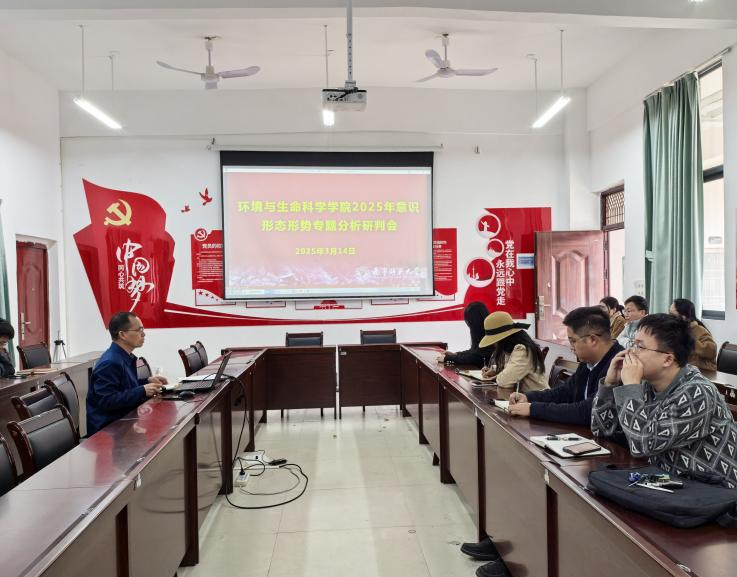 3月14日上午,环境与生命科学学院于武鸣校区召开2025年第一季度意识形态形势专题分析研判会,会议采取线上线下的形式进行。会议由学院党委副书记(主持党委工作)韦东林主持。