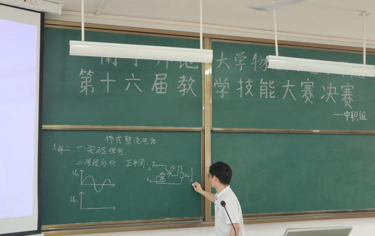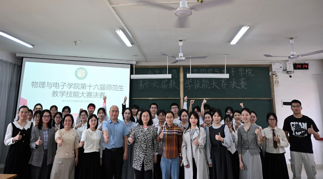 3月25日下午,我院举行该系列大赛第三阶段教学综合能力决赛暨物理与电子学院第十六届师范生教学技能大赛决赛。赛前,李光明副院长莅临现场参加了开幕仪式并致辞。马丽、刘韬容、李丹丹、黄佳、蒙庆华老师以及我院培养的师范生教学技能国赛、省赛获奖选手,现南宁市八中优秀青年教师黎康燕、李映华和广西大学在读研究生滕喜红等共同组成评委团。