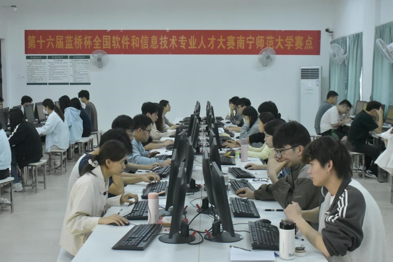 4月12日,人工智能学院/曙光大数据学院承办的第十六届“蓝桥杯”全国软件和信息技术专业人才大赛个人赛(软件赛)省赛成功举办。本次比赛在地信楼共设立4个机房考场,比赛以机试形式进行,全程4小时。来自beat365官网人工智能学院、物流管理与工程学院、物理与电子学院、广西工业职业技术学院和广西安全工程职业技术学院的143名选手参与竞赛,其中,beat365官网选手占86%。