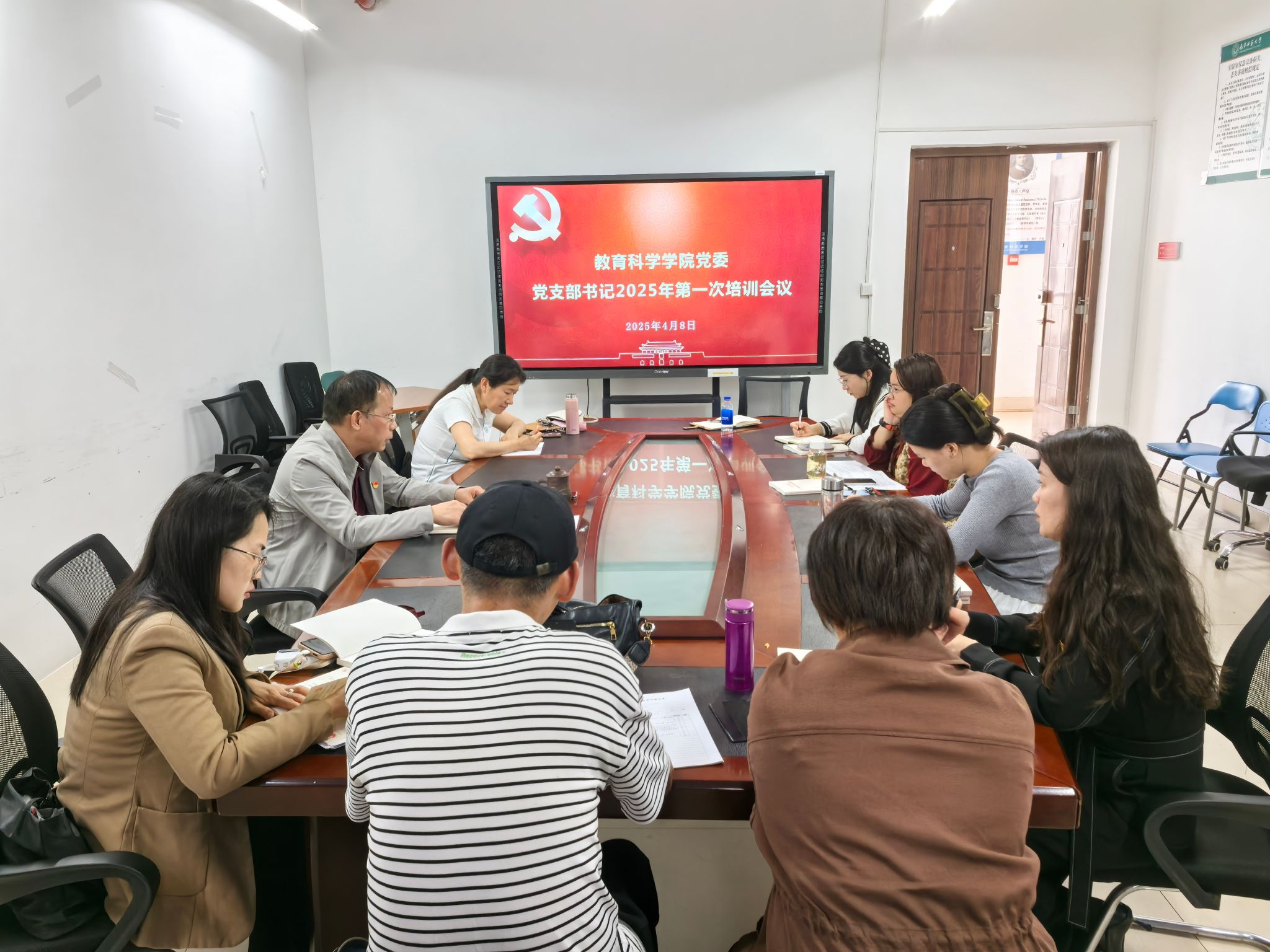 4月8日下午,教育科学学院党委在五合校区理楼1004-1会议室召开党支部书记2025年第一次培训会议。会议由学院党委书记余朝文主持,全体党支部书记参加会议。