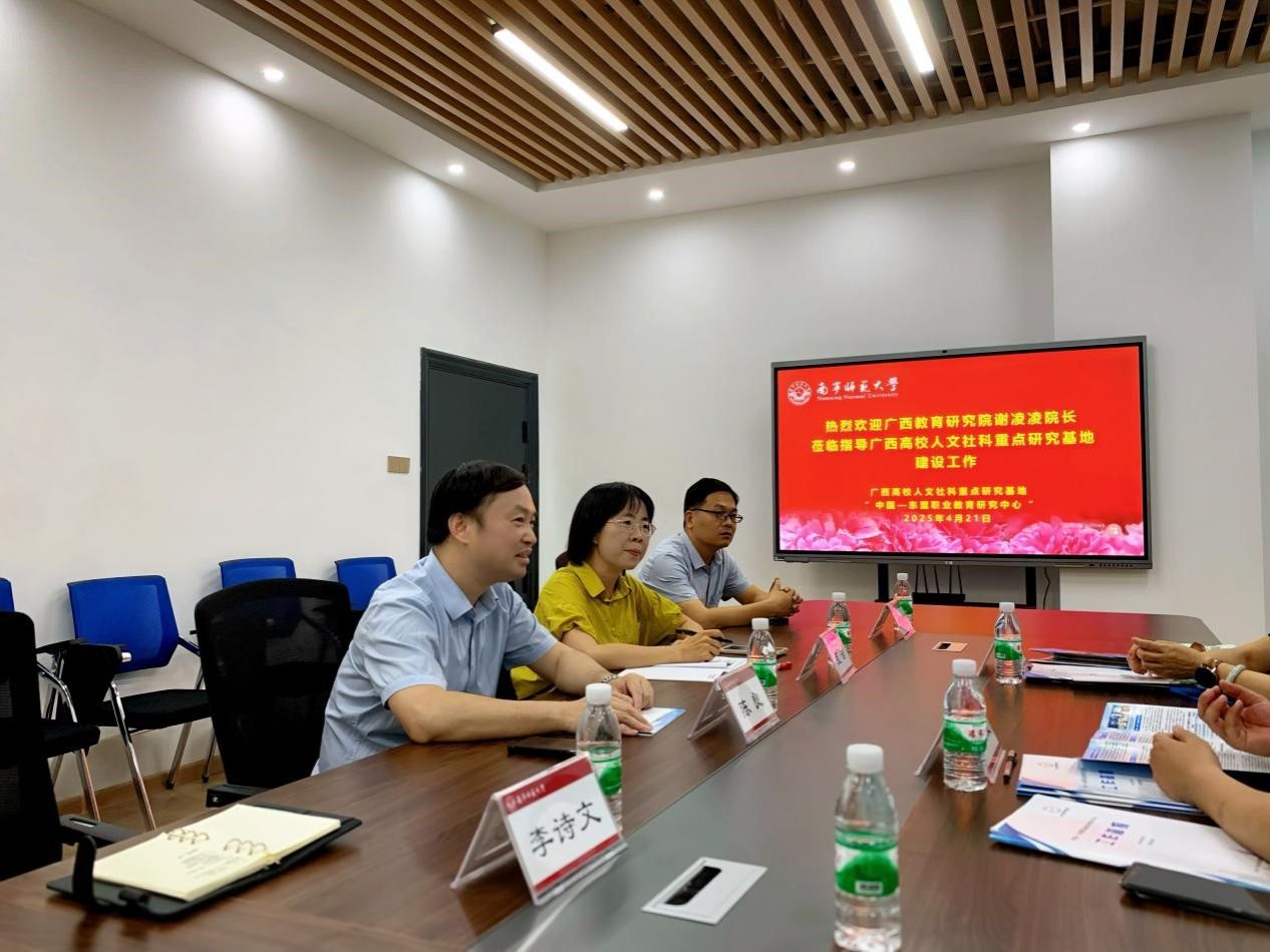 为进一步加强广西高校人文社科重点研究基地“中国—东盟职业教育研究中心”(以下简称“中心”)建设工作,4月21日,中心邀请广西教育科学研究院院长、八桂学者谢凌凌教授指导中心开展“广西高校人文社科重点研究基地”建设工作。职业技术师范学院院长、国家级教学名师陈良教授等4人参加了指导交流会。