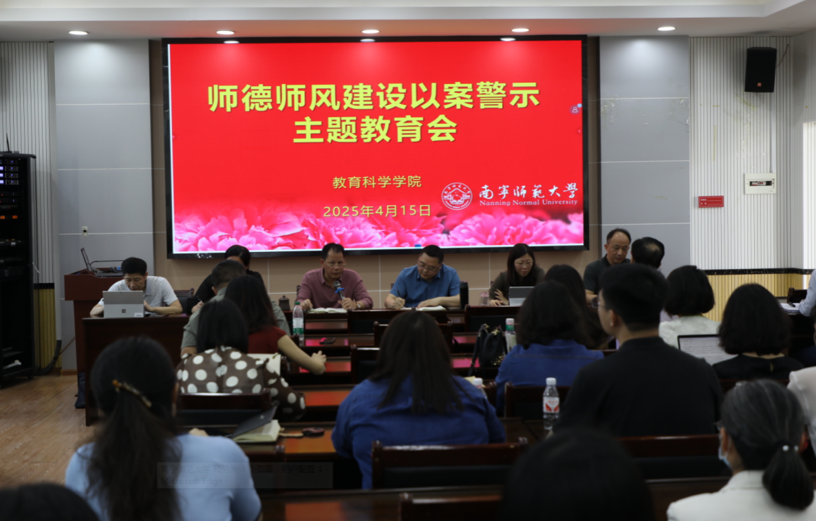 4月15日,教育科学学院于五合校区理综楼1003会议室召开师德师风以案警示主题教育会。本次会议由学院党委书记余朝文主持,学院领导班子成员及全体教职工参与,围绕师德师风建设工作展开深入研讨与全面部署。