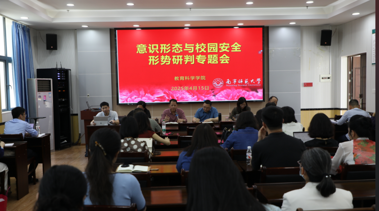 4月15日,教育科学学院于五合校区理综楼1003会议室召开意识形态与校园安全形势研判专题会议。本次会议由党委书记余朝文主持,学院领导班子成员及全体教职工共同参会,聚焦意识形态与校园安全工作展开深入研讨与系统部署。
