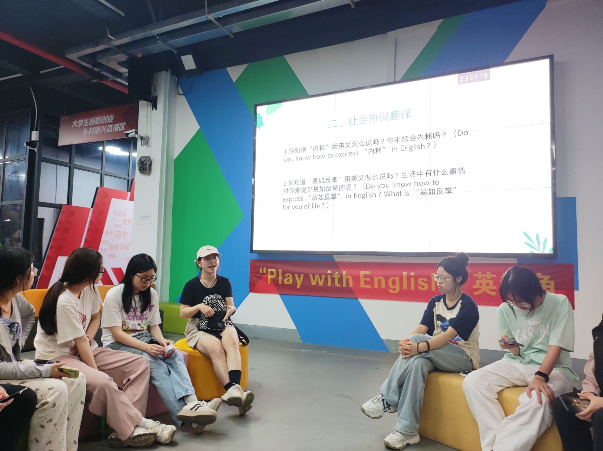 此次活动以“Play with English”为主题,意在打破传统英语教学的沉闷,营造轻松有趣的学习环境。活动内容丰富多样,每周由主持人根据安排选择不同项目,包括围绕特定话题展开的口语锻炼,分享并欣赏经典英文诗歌、小说、戏剧的英语文学艺术作品鉴赏,以及你说我猜、你画我猜等益智英文游戏。活动过程中,同学们热情高涨,现场气氛热烈非凡。在话题讨论环节,大家各抒己见,积极分享观点,口语表达能力得到充分锻炼。英语角为同学们搭建起互动交流的优质平台,助力同学们不断深化英语知识的实践应用。