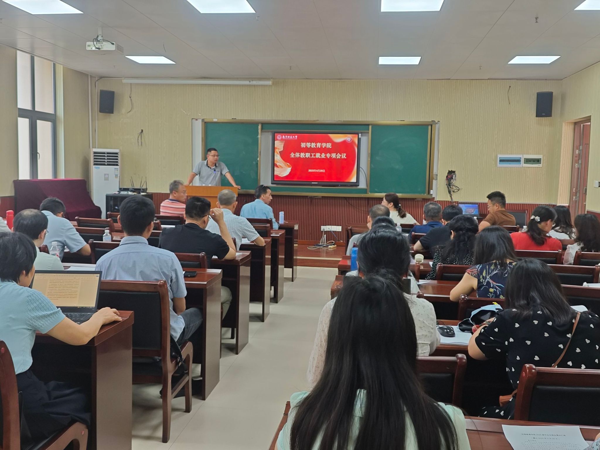 4月29日下午,初等教育学院在五合校区理综楼803会议室召开全体教职工就业专项会议。会议由学院党委书记陆以宏主持,学院全体教职工参加。