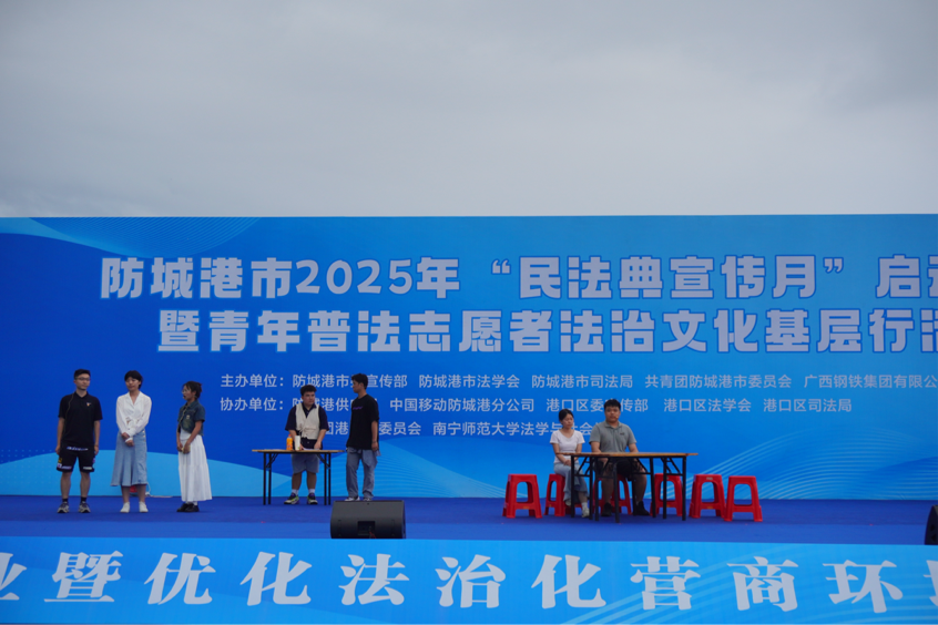 5月15日,防城港市2025年“民法典宣传月”启动仪式暨青年志愿者法治文化基层行活动在广西钢铁集团有限公司举行,beat365平台官方网站金铜鼓普法协会应邀参加,为活动增添了青春活力与专业力量。此次活动中,法学与社会学院作为协办单位,充分发挥专业优势,向广西钢铁集团有限公司近300名职工进行普法宣传,积极投身法治宣传。