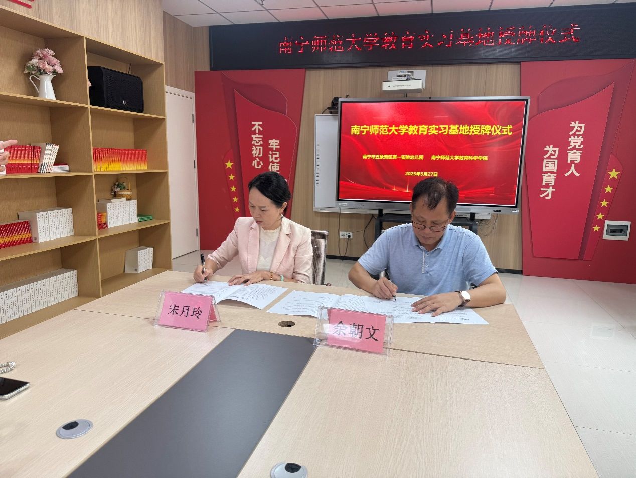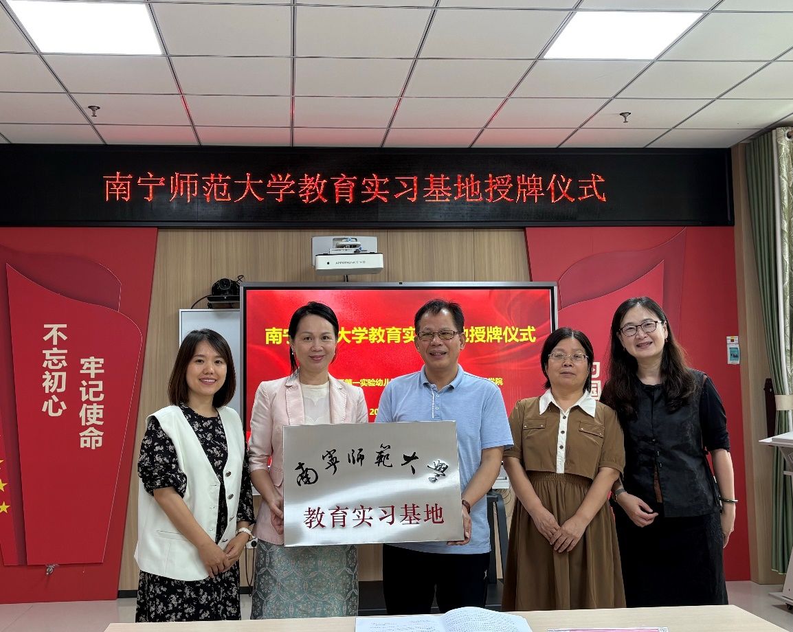 5月27日,beat365平台官方网站教育科学学院党委书记余朝文、学前教育系正副主任李香玲、丁月一行赴南宁市良庆区五象新区第一实验幼儿园(以下简称“五象一幼”)和南宁市教育局直属第一幼儿园,分别举行“beat365平台官方网站学前教育系实习实践基地”授牌仪式并开展访企拓岗活动。此次合作旨在推动高校与幼儿园的深度协作,探索“访企拓岗”新模式,为学前教育人才的培养与职业发展注入新动能。