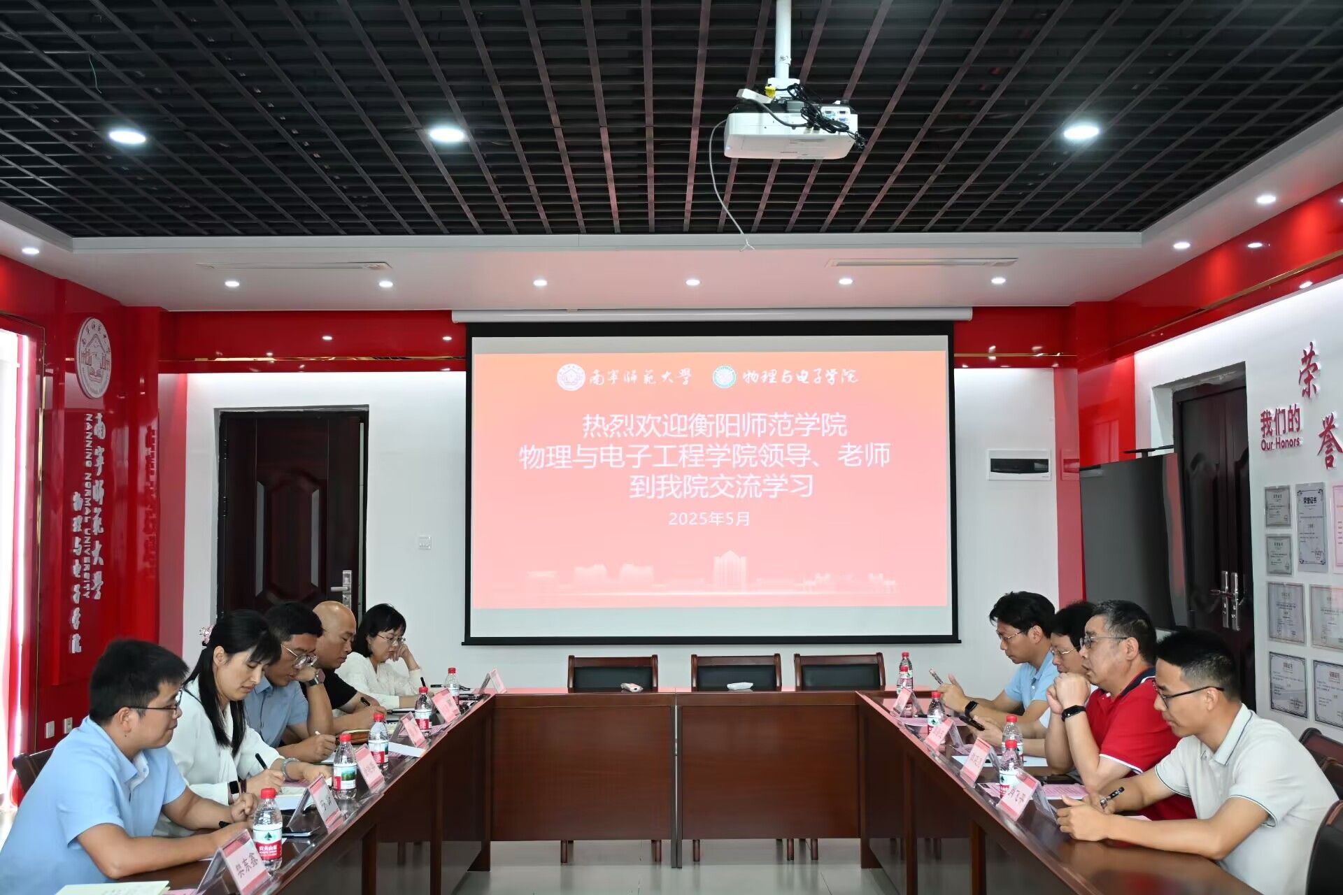 5月26日下午,衡阳师范学院原副校长张登玉率该校物理与电子工程学院院长谭延亮、副院长唐振坤、研究生秘书肖飞平等领导老师到我院交流与学习,物理与电子学院副院长陈东(主持行政工作)、副院长李光明热情接待,学院院长助理徐艳华、马丽教授、宁锋教授以及研究生秘书樊东鑫等参加本次交流。