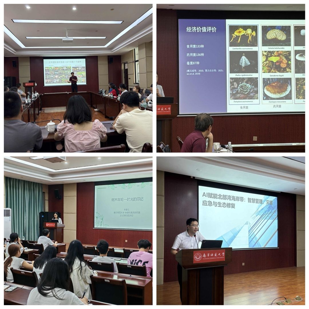 同时,实验室开放日还举办了丰富多彩的系列学术报告和科普讲座。28日下午特邀广东省科学院微生物研究所李泰辉研究员、张明副研究员分别作“我国近年蘑菇多样性研究进展”和“罗霄山脉大型真菌多样性研究”学术报告;29日晚上由地理与海洋研究院余碧云副研究员和严小敏高级工程师分别作“树木年轮——时光的印记”和“AI赋能北部湾海岸带:智慧管理、灾害应急与生态修复”科普讲座,听取报告和讲座的老师和同学们积极参与互动,与专家进行深入探讨。“专家的分享不仅拓宽了我的学术视野,还为我的科研方向提供了新的思路,真是受益匪浅。”一名研究生感慨道。