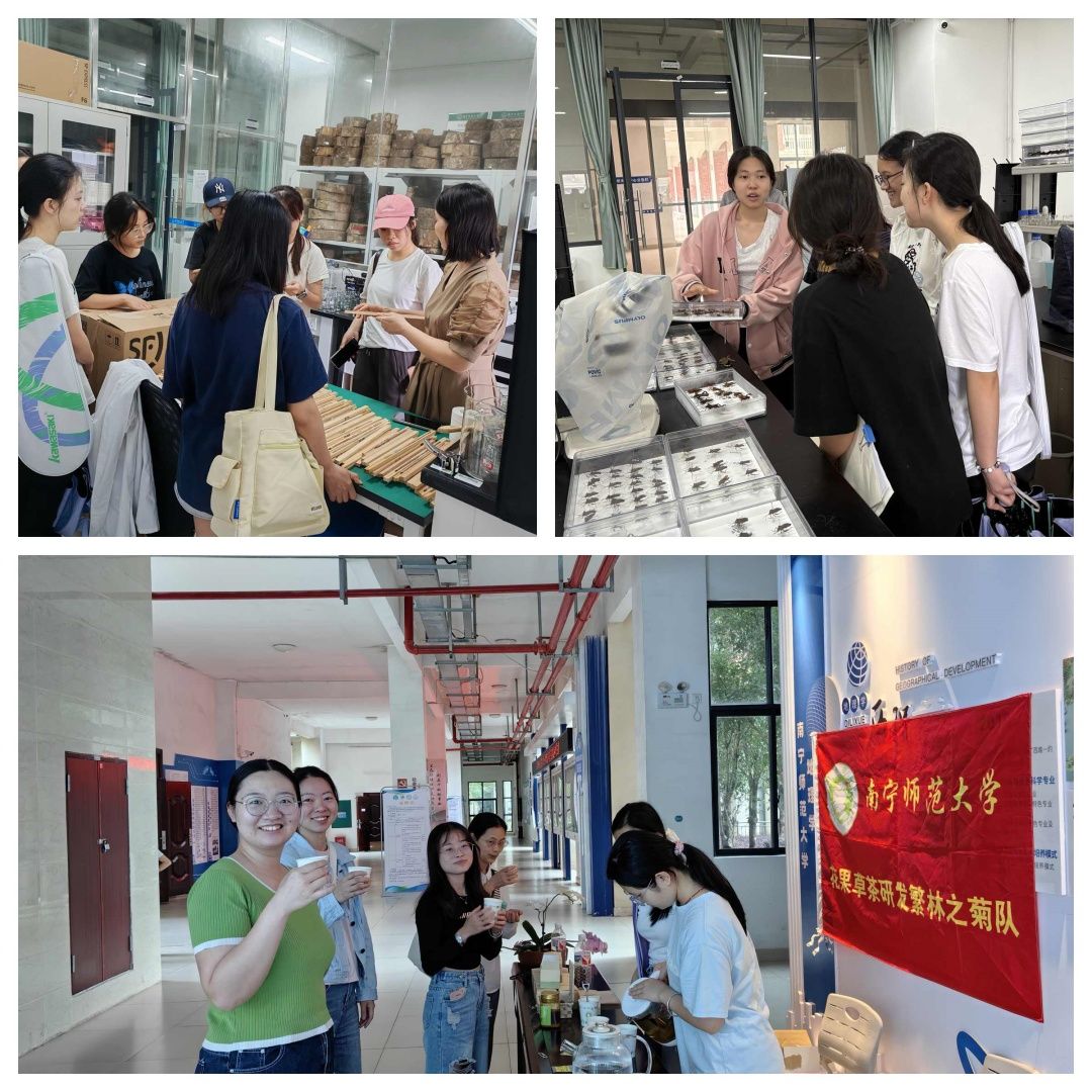 在地理学展示馆,学生们跟随讲解员参观了解beat365官网地理学及其省部级重点实验室的发展历程、学科特色、学术成果、社会服务能力及丰厚的学科文化底蕴,展现了beat365平台官方网站地理学尤其是重点实验室立足广西,充分发挥“三沿三联”的区位优势,服务粤港澳大湾区、中国(广西)-东盟区域生态文明建设和高质量发展的责任与使命。在专业实验室平台开放过程中,杨元征老师讲解无人机与近地面遥感技术及其应用前景;唐金利老师介绍树木年轮样品处理及相关分析测试仪器使用方法;韦明春同学介绍了昆虫分类及昆虫标本制作方法;王艾岚同学讲解花粉的前世今生;彭玉娇老师、乔彦慈老师等带领同学们参观实验室各类大型仪器设备;张成虎老师带领大创项目组成员开展花茶品鉴活动,引来众多师生品茶、赞誉!许多同学表示,这种沉浸式学习让抽象的理论变得生动,也让他们更加理解科研工作的严谨性和创新性,更能激发大家的科研热情。