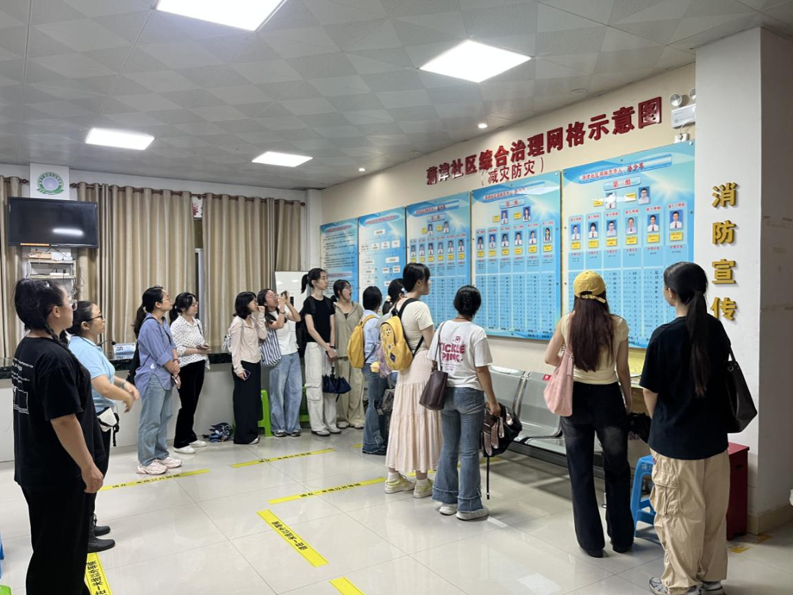 在孙少琴书记的引导下,师生们先后参观了浦津书院、五圣宫等社区文化地标,深入了解当地历史习俗和社区治理模式。系列社区文化地标不仅融入了现代社区的创新实践,更展现了当地民间信仰与社区生活的紧密联系,体现了民族文化在基层社会治理中的独特价值。民族社会工作的核心在于文化持育与社区发展之间的平衡,浦津社区的相关实践为同学们提供了重要启示——如何将传统文化与现代社会治理相结合,回应了民族社会工作的重要实践和理论课题。