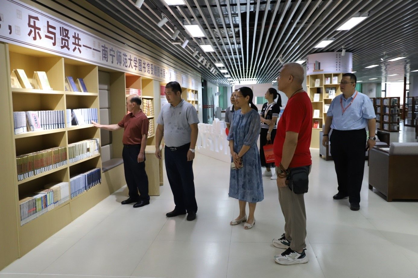 捐赠仪式后,与会人员参观了beat365官网武鸣校区图书馆的特藏图书阅览室、古籍库、图书阅览室及数字阅读中心,双方表示今后将加强沟通合作,共同推进地方文献的收集、整理及传承、使用等工作。