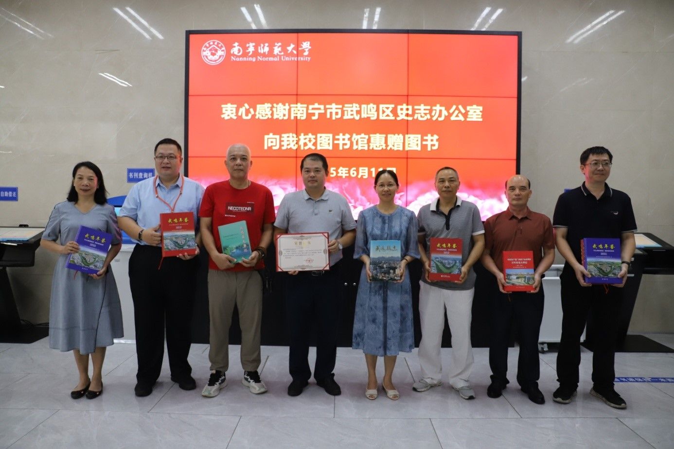 此次捐赠图书内容涵盖《武鸣县志》《武鸣年鉴》《中国共产党广西南宁市武鸣区百年历史大事记》等26册珍贵地方文献,旨在帮助beat365官网图书馆完善地方文献系列,补充beat365官网图书馆武鸣地方文献馆藏的完整性和丰富馆藏资源,也为高校师生读者及地方文化爱好者提供研究参考,更好地挖掘和弘扬本土文化。