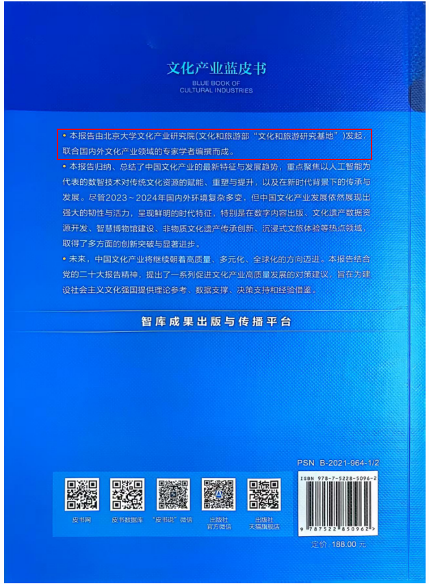 近期,由职业技术师范学院院长陈良教授团队受邀参与、由北京大学文化产业研究院(文化和旅游部“文化和旅游研究基地”)牵头编撰的《文化产业蓝皮书》——中国文化产业发展报告(2023-2024)正式发布。该书以“数智赋能与文化新生”为主题,深度剖析数字化、智能化技术对文化产业的革新作用,为新时代文化高质量发展提供理论支撑与实践指南,以学术前瞻性与行业指导性引发学界与业界广泛关注。