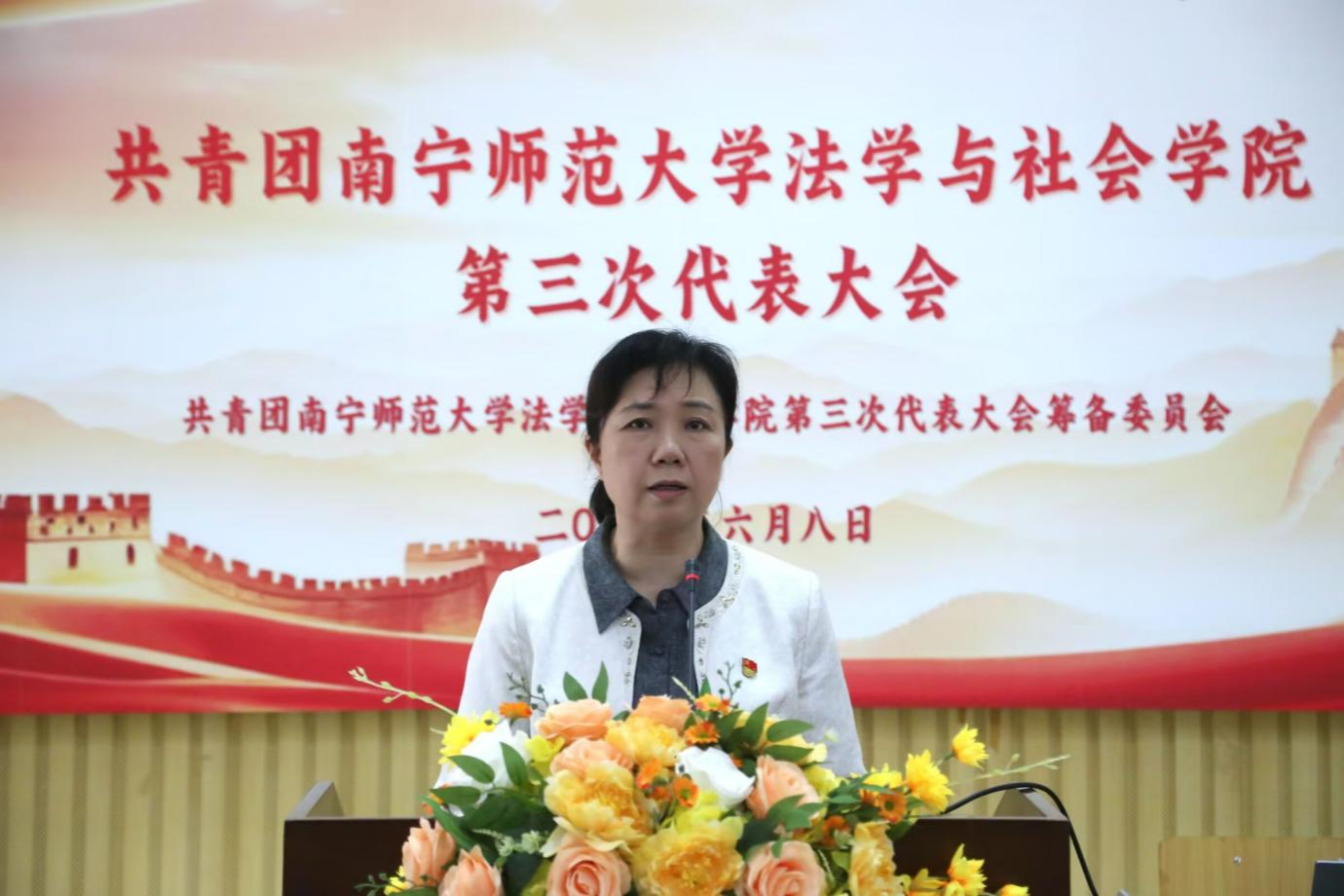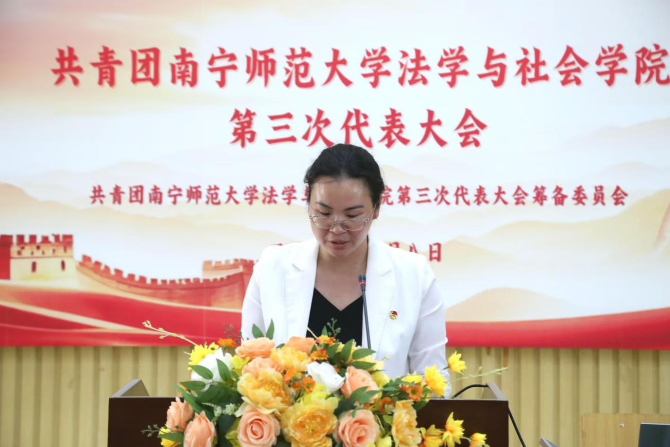 为贯彻落实《中国共产主义青年团章程》、《中国共产主义青年团基层组织选举规则》和《中国共产主义青年团普通高等学校基层组织工作条例》等有关规定,法学与社会学院团委于2025年6月8日上午在五合校区综合楼107教室举行共青团beat365平台官方网站法学与社会学院第三次代表大会。学校团委书记区丽媛老师、学院党委书记许建老师、学院党委副书记张建梅老师,学院团委书记农云霞老师和学院辅导员邓雅文老师出席了本次大会,参加本次大会的正式代表有195人。