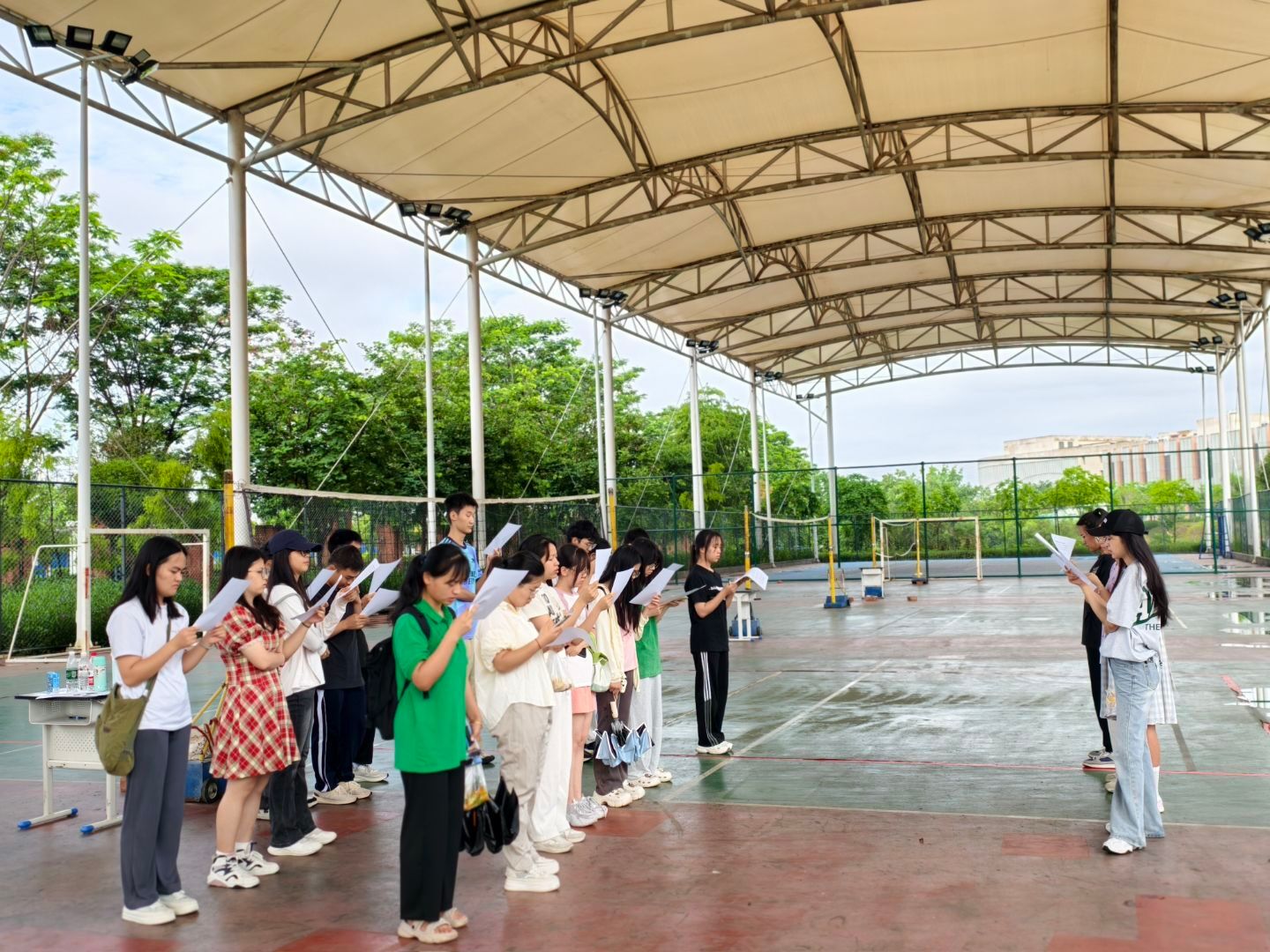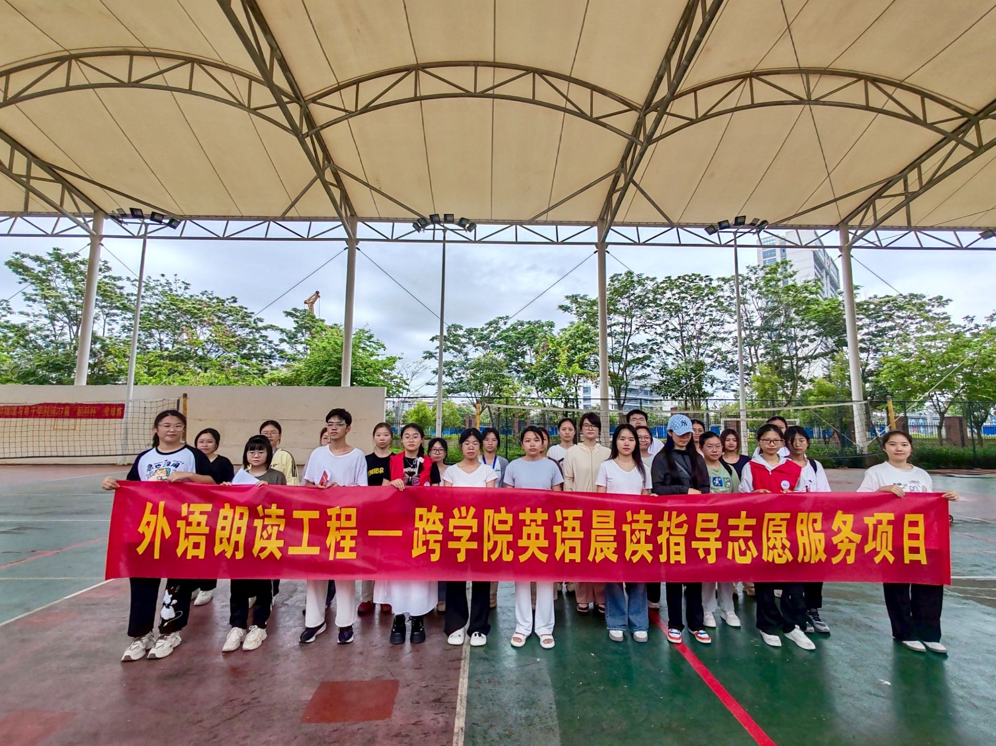 为助力非外语专业学生提升英语能力,营造校园英语学习氛围,beat365平台官方网站外国语学院于5月19日至6月13日开展 “外语朗读工程——跨学院英语晨读指导志愿服务项目”活动,活动每周一至周五在桂园排球场、兰园体育馆旁等进行,累计服务超400人次。