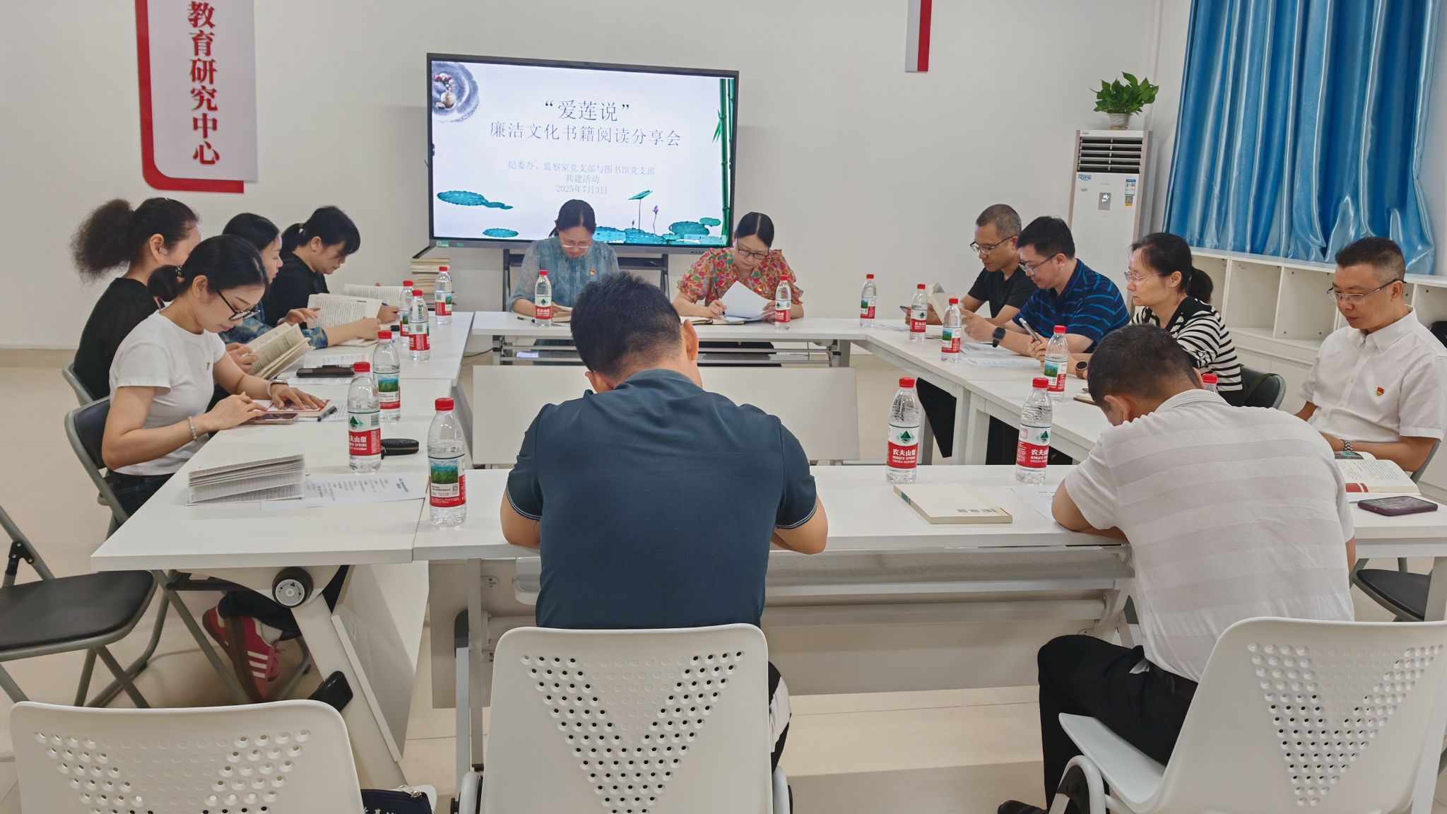 为扎实开展深入贯彻中央八项规定精神学习教育,营造崇廉尚洁的浓厚氛围,7月3日上午,图书馆党支部携手纪委办、监察室、巡察办党支部于五合校区理综楼“党的纪律教育研究中心”开展“筑牢廉洁防线 共建书香正气”主题党建共建活动。图书馆党支部支委、部分党员代表和纪委办、监察室、巡察办党支部全体党员参加了活动。