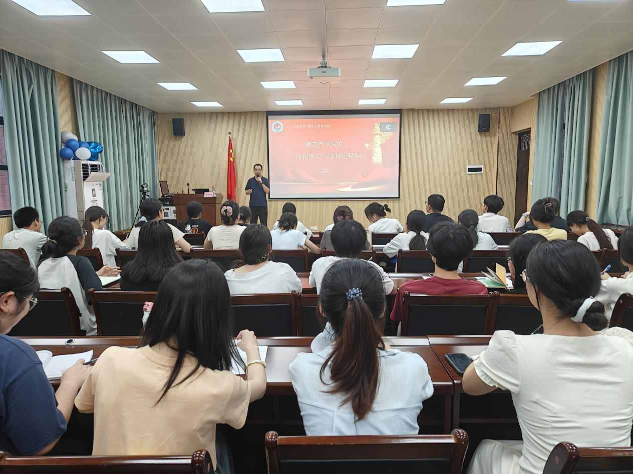 6月18日,学院副院长熊冬春为教育技术与计算机本科生党支部党员开展授课,全面阐释中央八项规定精神内涵,以腐败案例警示危害,号召学生党员要发挥党员的先锋模范作用,助力营造风清气正校园环境。
