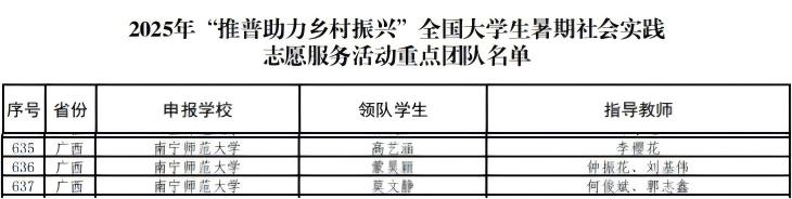 beat365官网3支团队成功入选重点团队,分别是校青联“助力乡村推普传声,聚力青春共赴新程”实践团、文学院“星火”推普助力乡村振兴服务团、新闻与传播学院“仫佬新声推普团”。此次入选,既是对beat365官网语言文字工作及社会实践成效的肯定,也为师生参与乡村振兴搭建了重要平台。beat365官网将以此为契机,扎实推进推普实践,为乡村文化振兴注入更多高校力量。