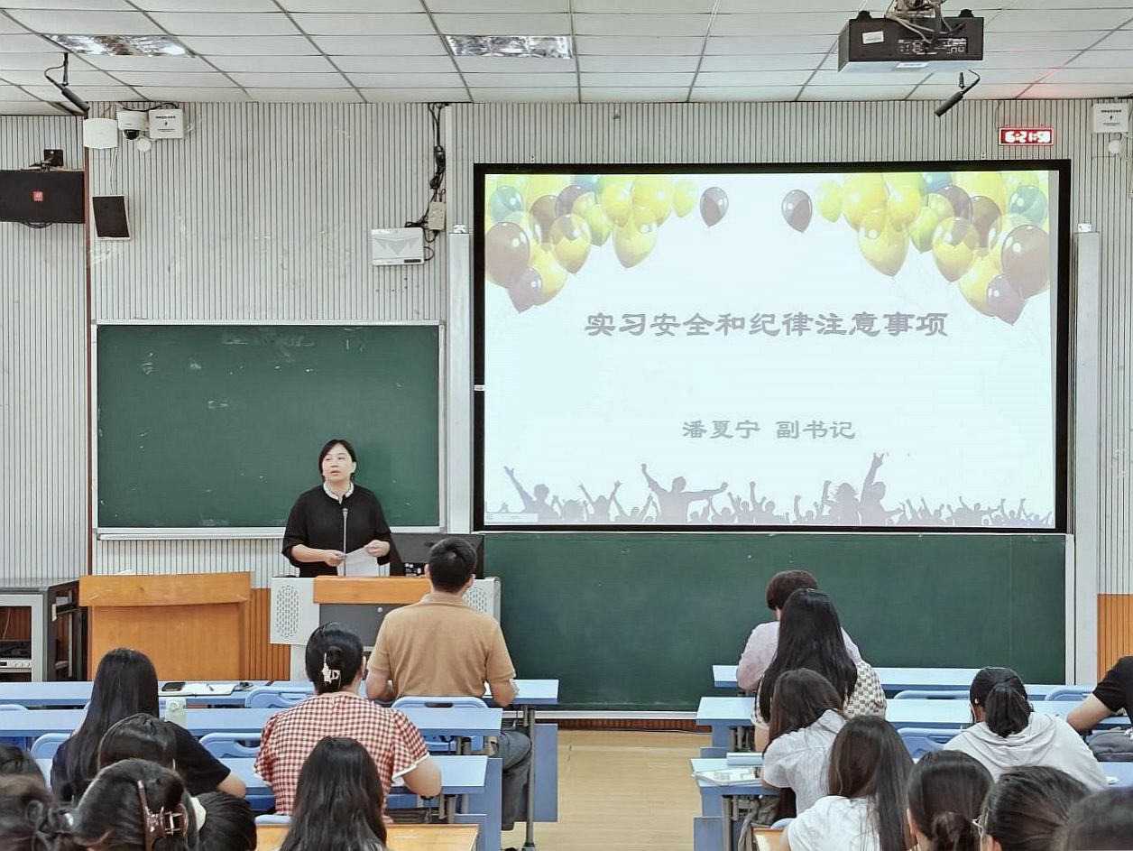 杨绪明从学术深造与职业发展的双重维度,阐释了考研的战略意义。他结合历年考研数据,就备考策略、信息筛选、目标院校定位等核心环节提出实操建议,特别强调“科学规划时间节奏”与“保持身心平衡”的重要性,鼓励学生以良好心态冲刺目标。潘夏宁以 “安全第一、纪律先行”为原则,从信息安全、行为规范、突发事件应急处理等方面提出明确要求,为实习工作划定纪律红线。蒋招凤详细解读了学院“集中+分散”“校内+校外”“国内+国外”的多元化实习模式,从实习基地对接、经费管理细则、质量监控流程到考核标准进行系统说明,明确了实习周期内的任务分配与过程管理要求,为学生搭建从理论到实践的转化桥梁。2022级2班班主任田野老师围绕选题规划、时间安排、写作规范等关键环节展开指导,着重强调了学术不端行为的严肃性与危害性。