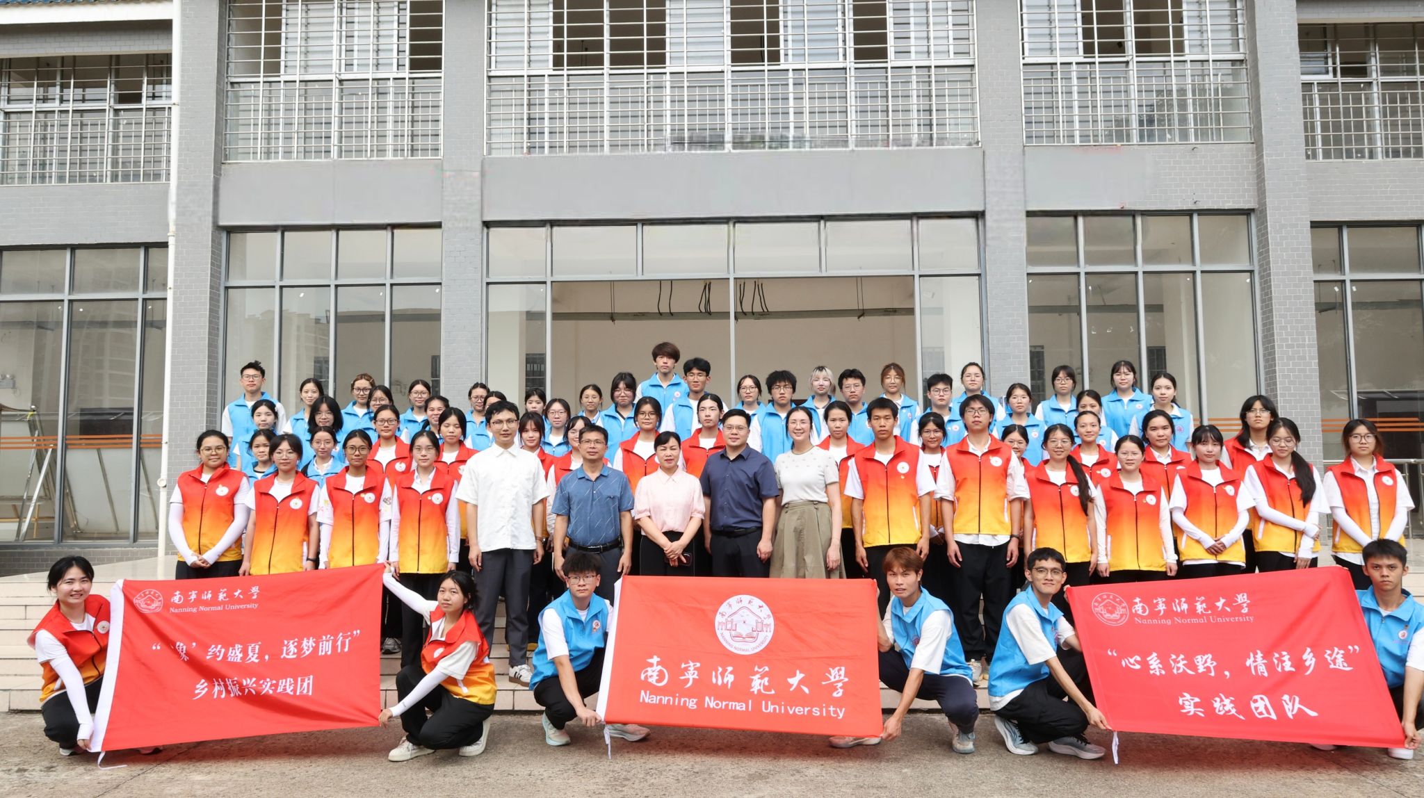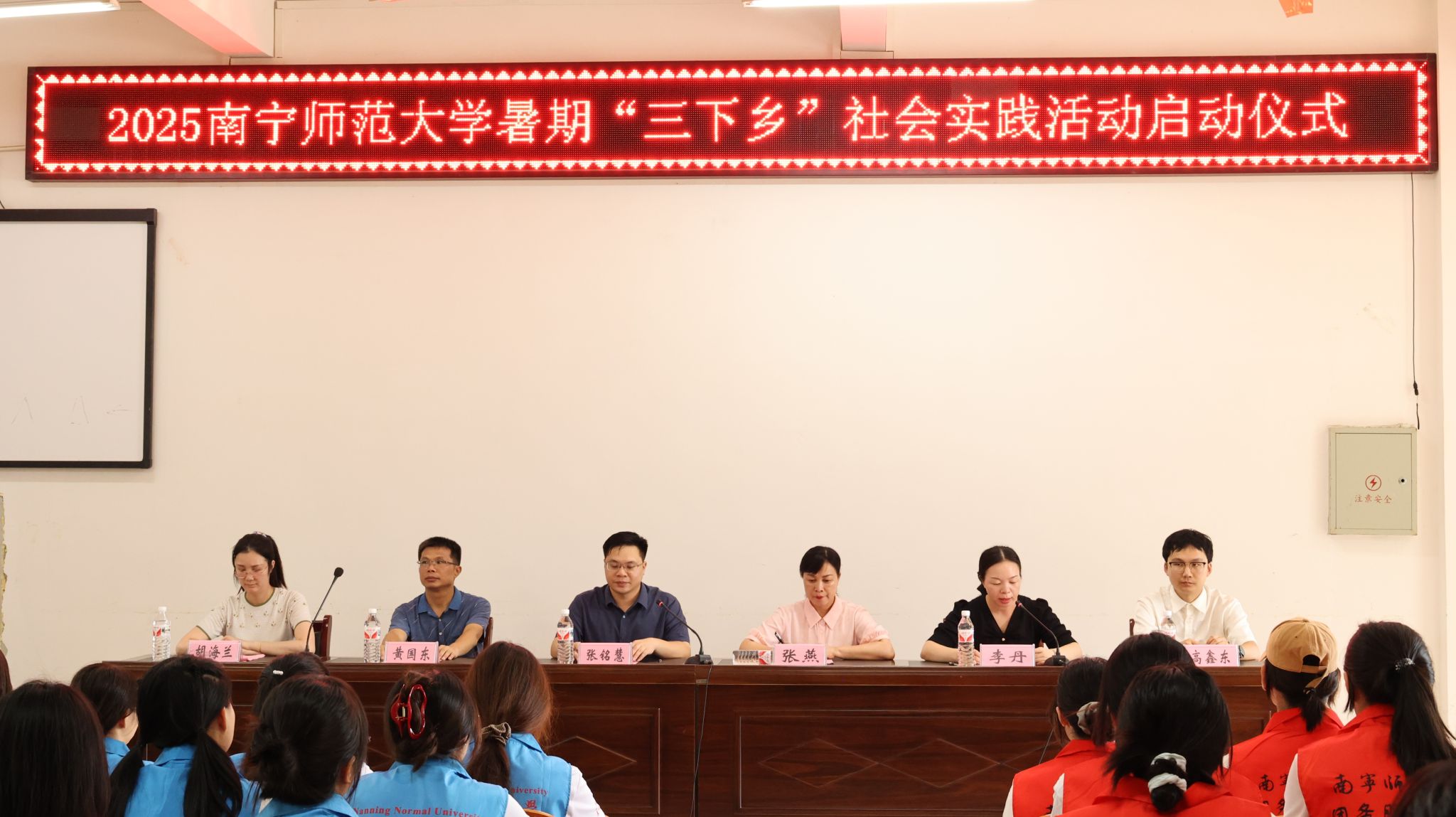 7月14日,beat365官网学生会2025年“砥砺前行传薪火青春逐梦展芳华”大学生志愿者暑期“三下乡”社会实践活动启动仪式在象州县民族中学举行。象州县团委书记张铭慧、县委宣传部副部长、文明办主任张燕、县教育体育局副局长黄国东、县团委办公室主任李丹,beat365官网团委胡海兰老师、美术与设计学院高鑫东老师以及学生实践团队全体成员参加了启动仪式。