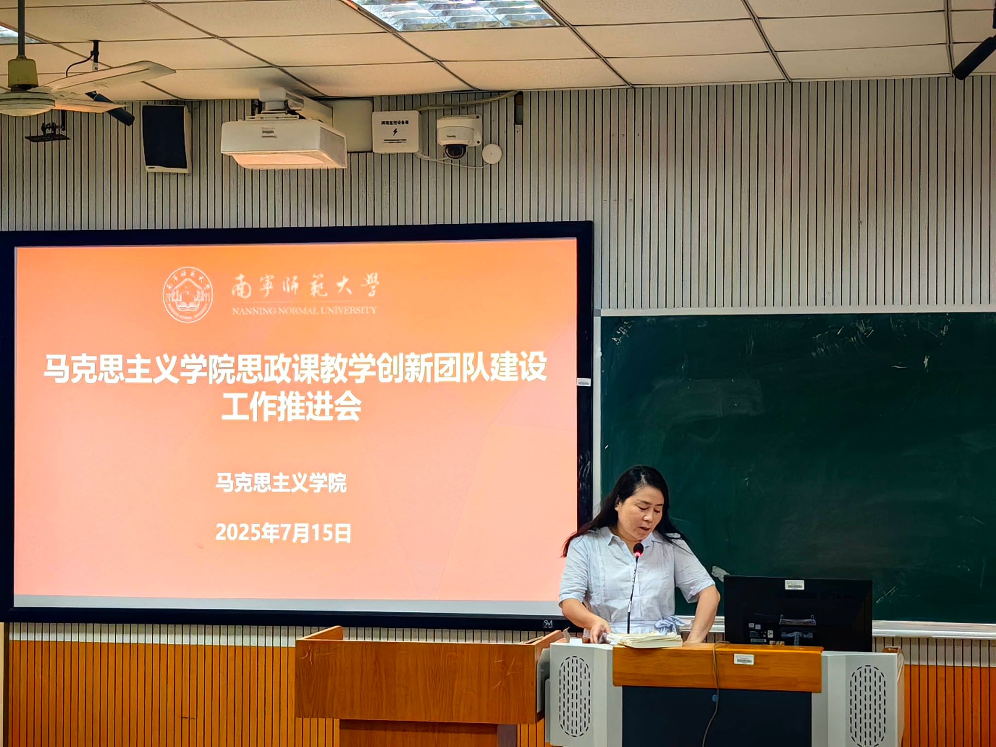 谢丽丽宣读了《关于确立马克思主义学院思政课教学创新团队的通知》,正式宣布成立四个思政课教学创新团队,并就团队建设的目标任务、考核要求等进行了说明。