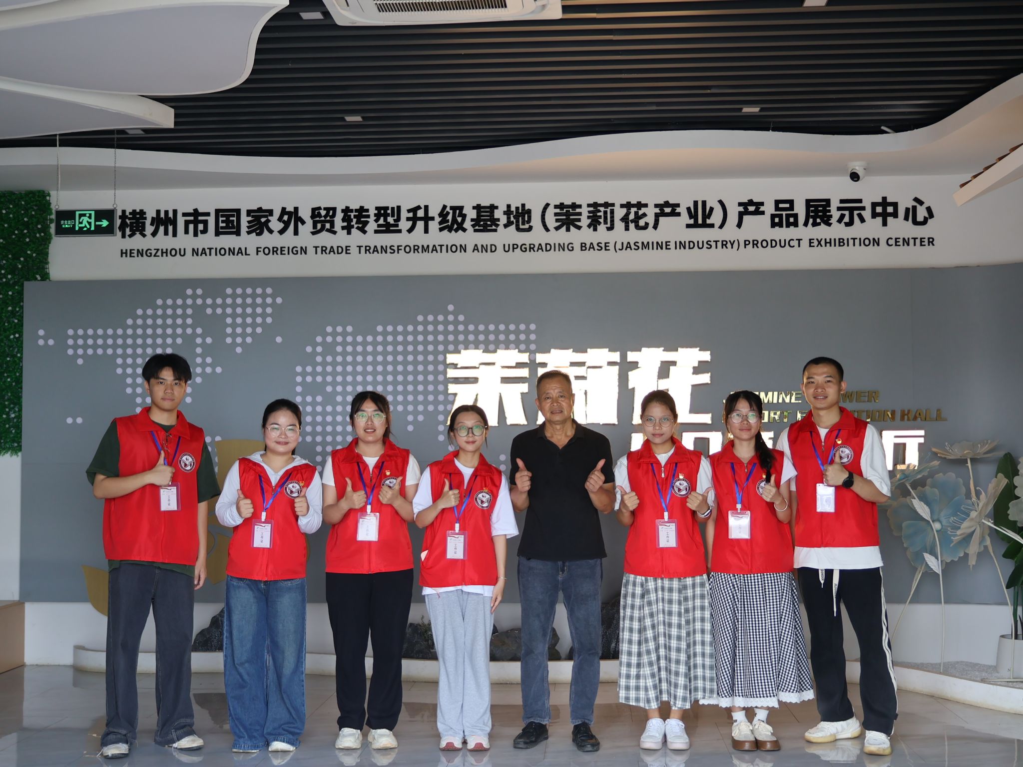 调研组聚焦横州市茉莉花特色产业,深入中华茉莉园、极萃园、茉莉花交易市场等场所,通过实地走访、与从业者访谈、收集市场数据等方式,全面调研茉莉花全产业链。通过调研,志愿者们深刻了解产业发展的机遇与挑战,梳理出其与乡村振兴战略的契合点。他们深刻认识到,这一产业既是当地经济发展的支柱,也是文化传承创新的重要载体,为理解乡村振兴提供了生动可感的实践案例。