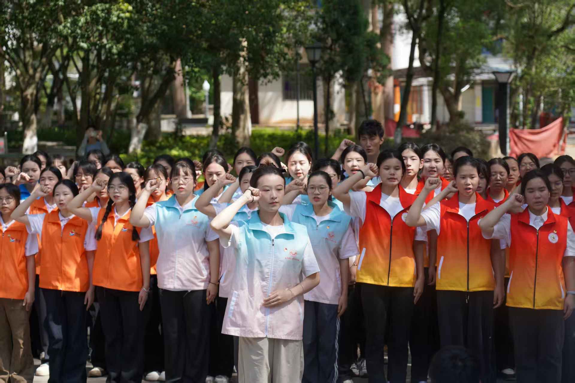 17日上午,实践团在象州县烈士陵园革命烈士纪念碑前开展主题团日活动。全体成员肃立默哀,向革命先烈致以崇高敬意,并重温入团誓词,齐唱《没有共产党就没有新中国》,将缅怀之情化为奋进力量。最后,成员们来到象州博物馆,重点参观"红色象州"专题展区,通过丰富的历史资料了解当地革命历史,并与韦文俊馆长就红色文化传承进行深入交流。