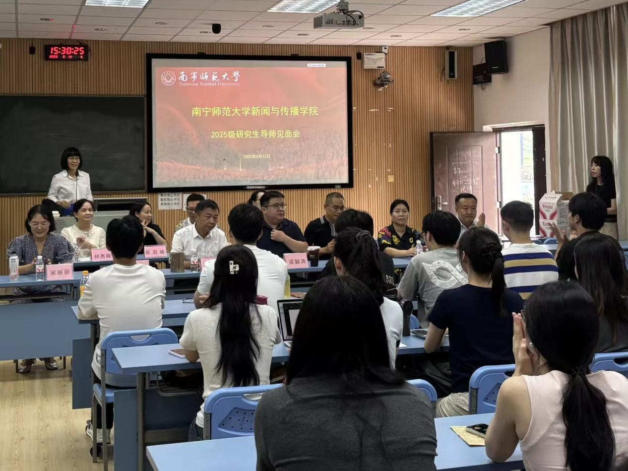 9月12日下午,新闻与传播学院2025级研究生导师见面会在五综410举行。新闻与传播学院院长梁颖涛、副院长周飞伶及硕士研究生导师出席见面会。会议由周飞伶副院长主持。
