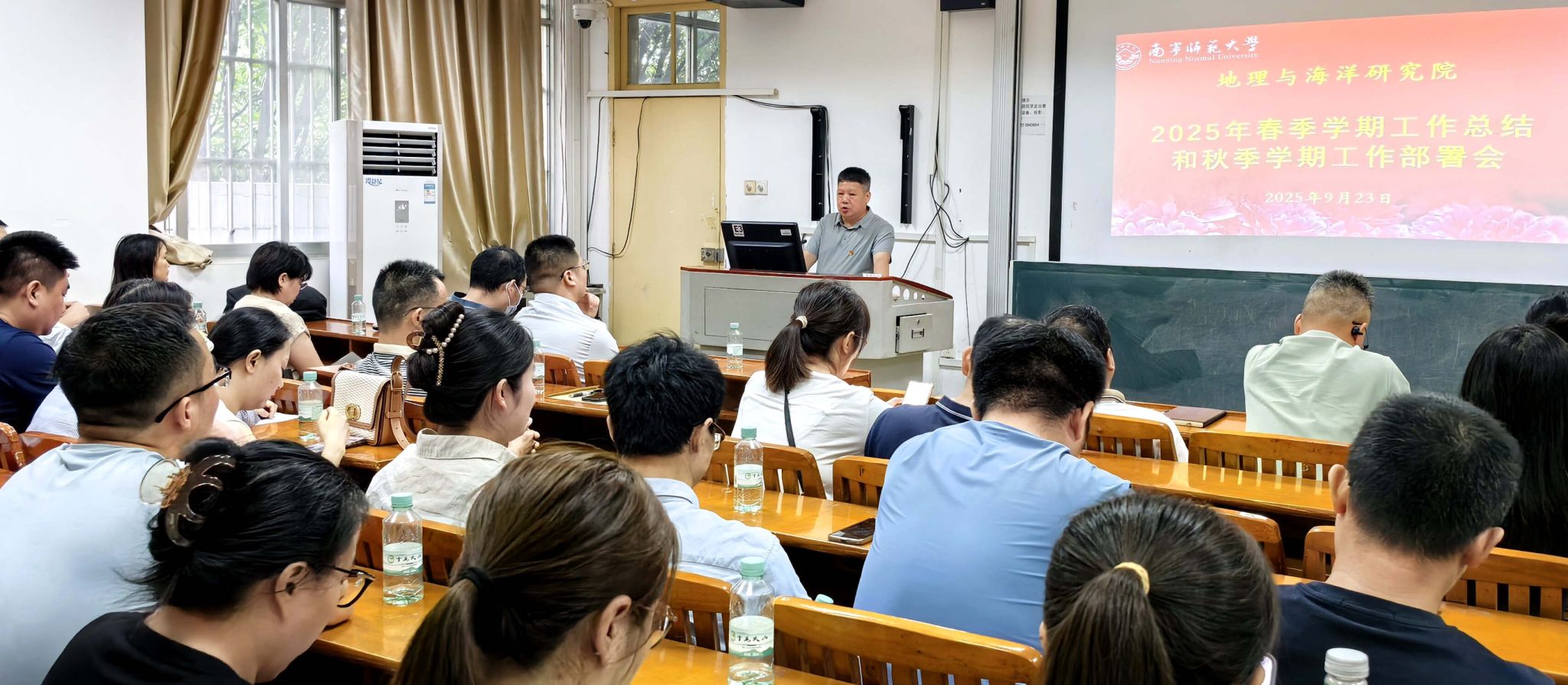 9月23日下午,地理与海洋研究院在明秀校区召开2025年秋季学期教职工大会,核心任务是锚定2025年下半年关键目标,全力冲刺年度任务。院党委、行政领导班子和全体教职工参加了会议。